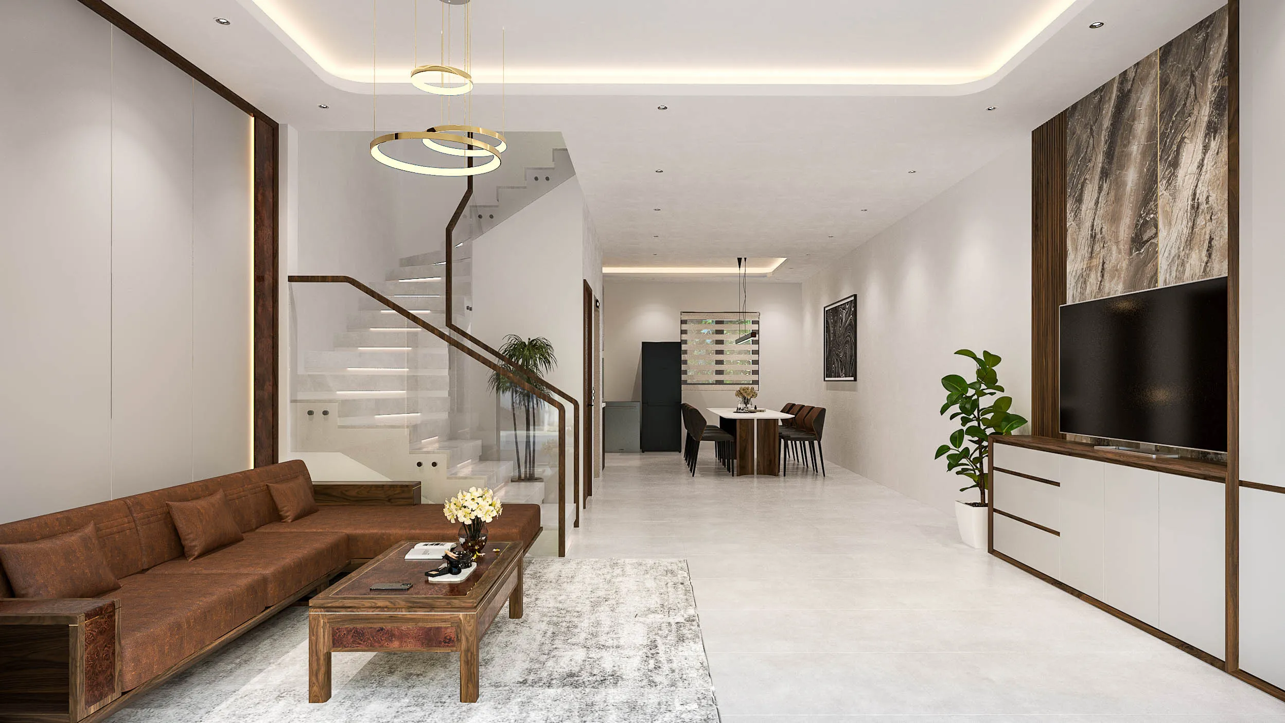 Sống đủ – không dư. Với dự án này, MAS hướng đến một không gian hiện đại, gọn gàng và ấm áp – nơi con người cảm nhận rõ sự cân bằng giữa tiện nghi và cảm xúc. Gỗ óc chó, tông trắng sữa và ánh sáng tự nhiên được hòa trộn tinh tế để tạo nên cảm giác ấm nhưng thoáng, hiện đại nhưng có chiều sâu. Mỗi chi tiết trong ngôi nhà đều được giản lược, nhưng đủ để thể hiện sự chỉn chu và gu thẩm mỹ của chủ nhân – người tìm kiếm sự tinh tế trong những điều quen thuộc. Đây không chỉ là thiết kế của một ngôi nhà – mà là một phong cách sống: hiện đại, tĩnh, và bền với thời gian.