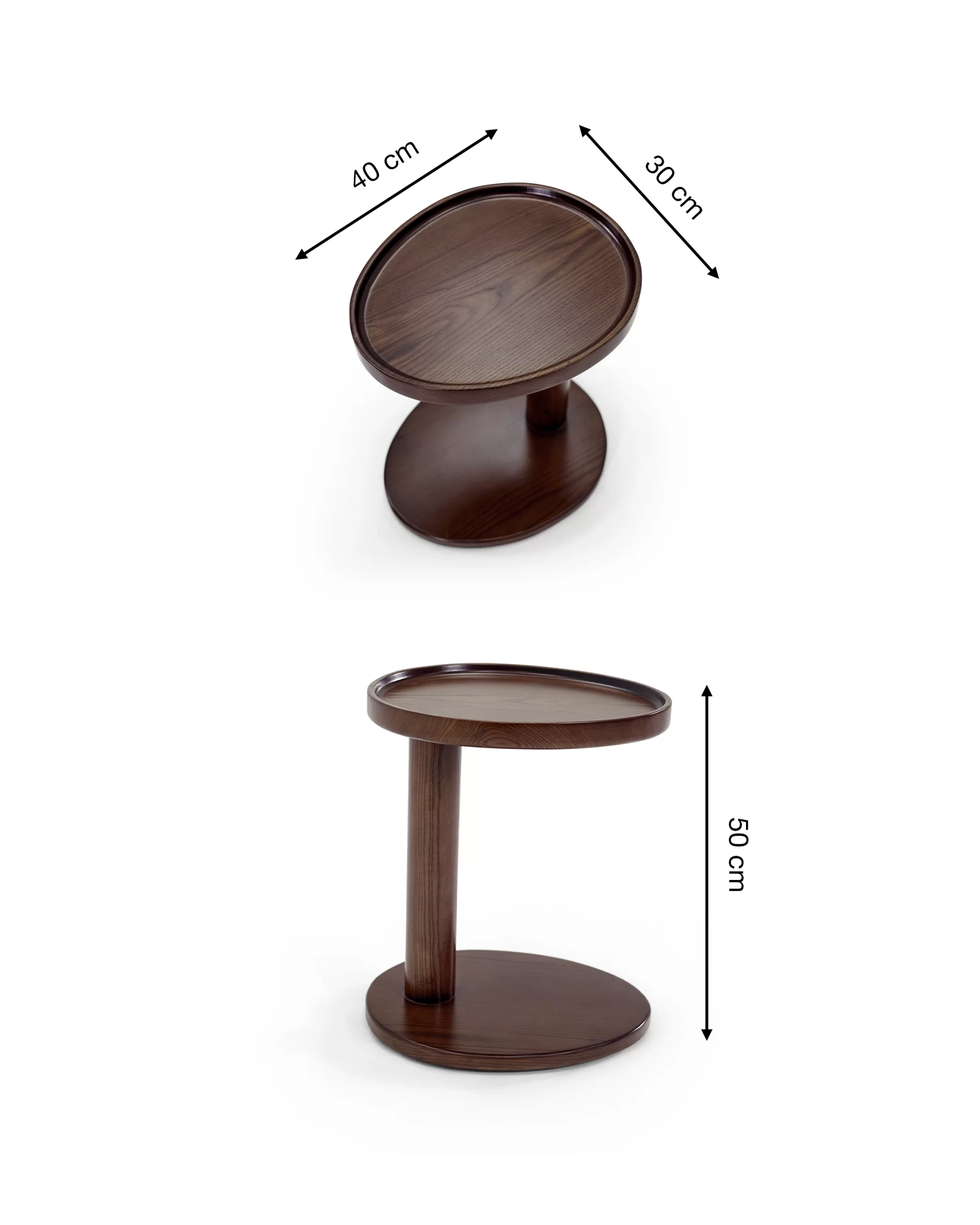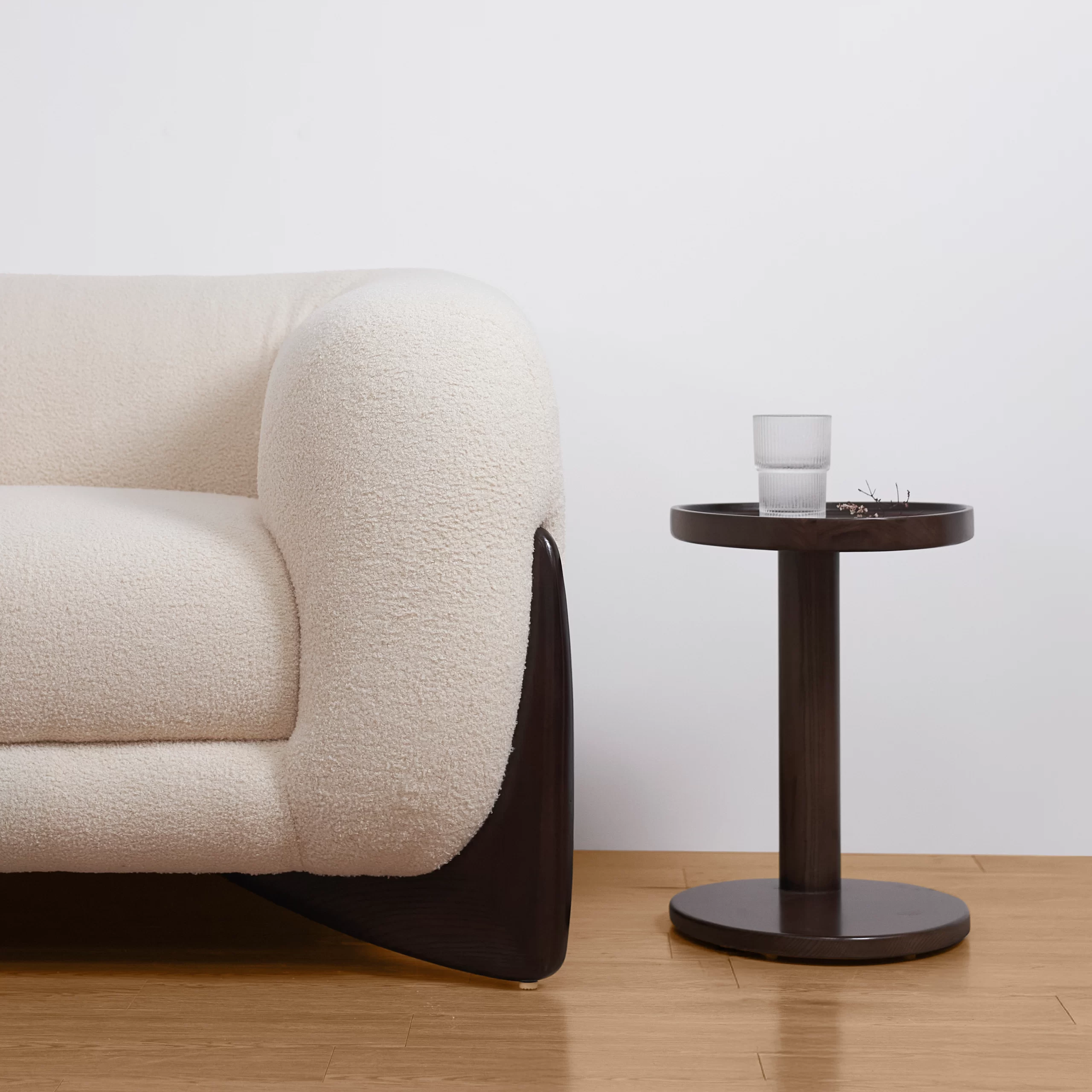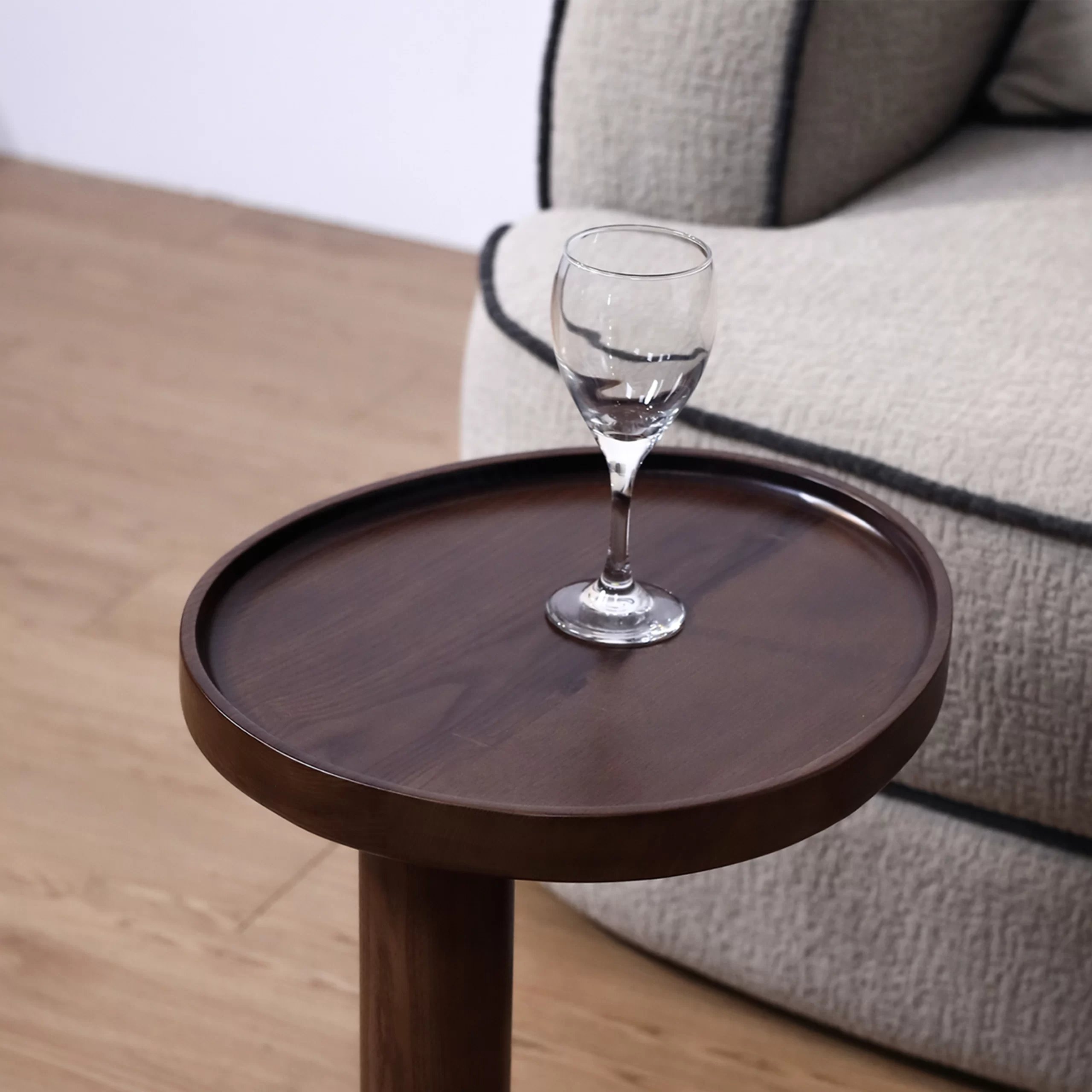 ISLET là bàn phụ “nhỏ mà lo đủ việc”: trụ lệch tâm áp sát sofa, tay với là tới; mặt khay có viền giữ ly/sách an toàn; đế bầu ôm sàn vững mà gọn. Nhấc một tay là đổi vị trí – từ góc đọc đến cạnh ghế tiếp khách đều “đúng chỗ”.
