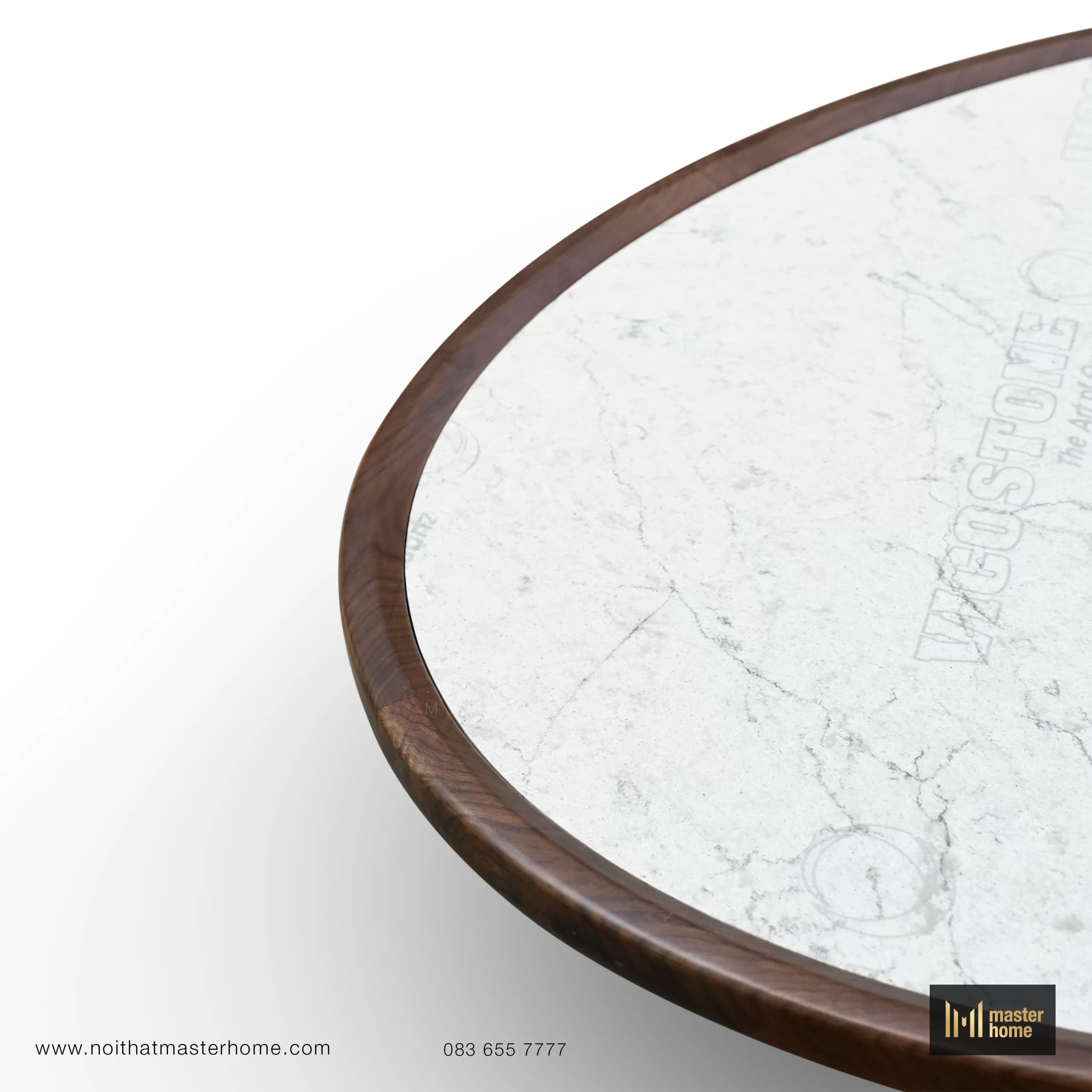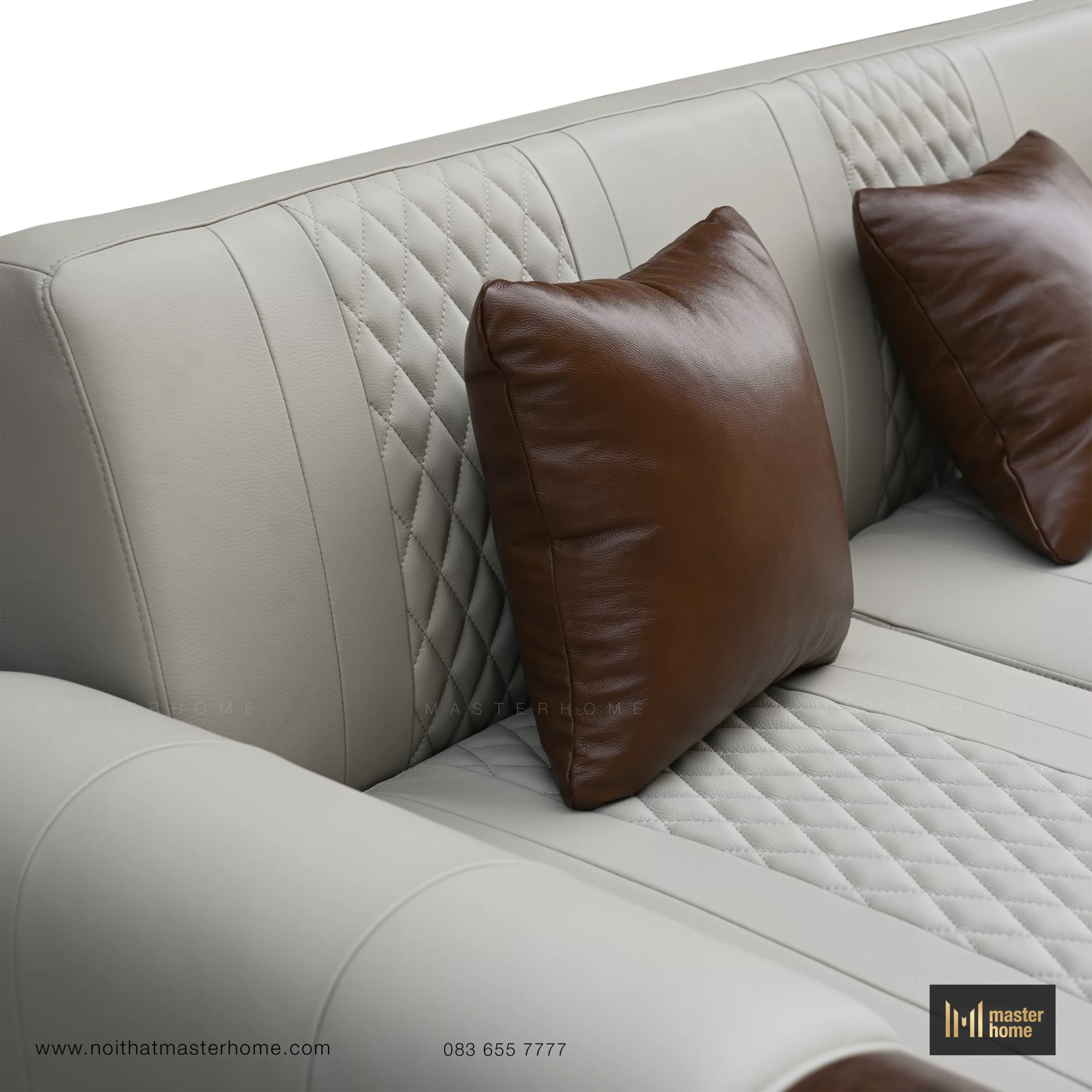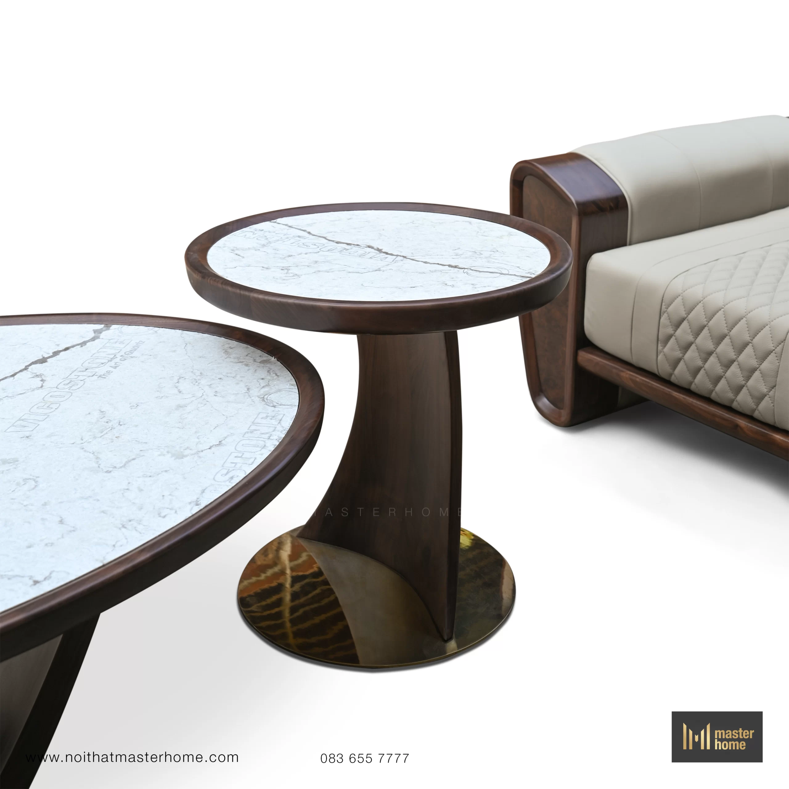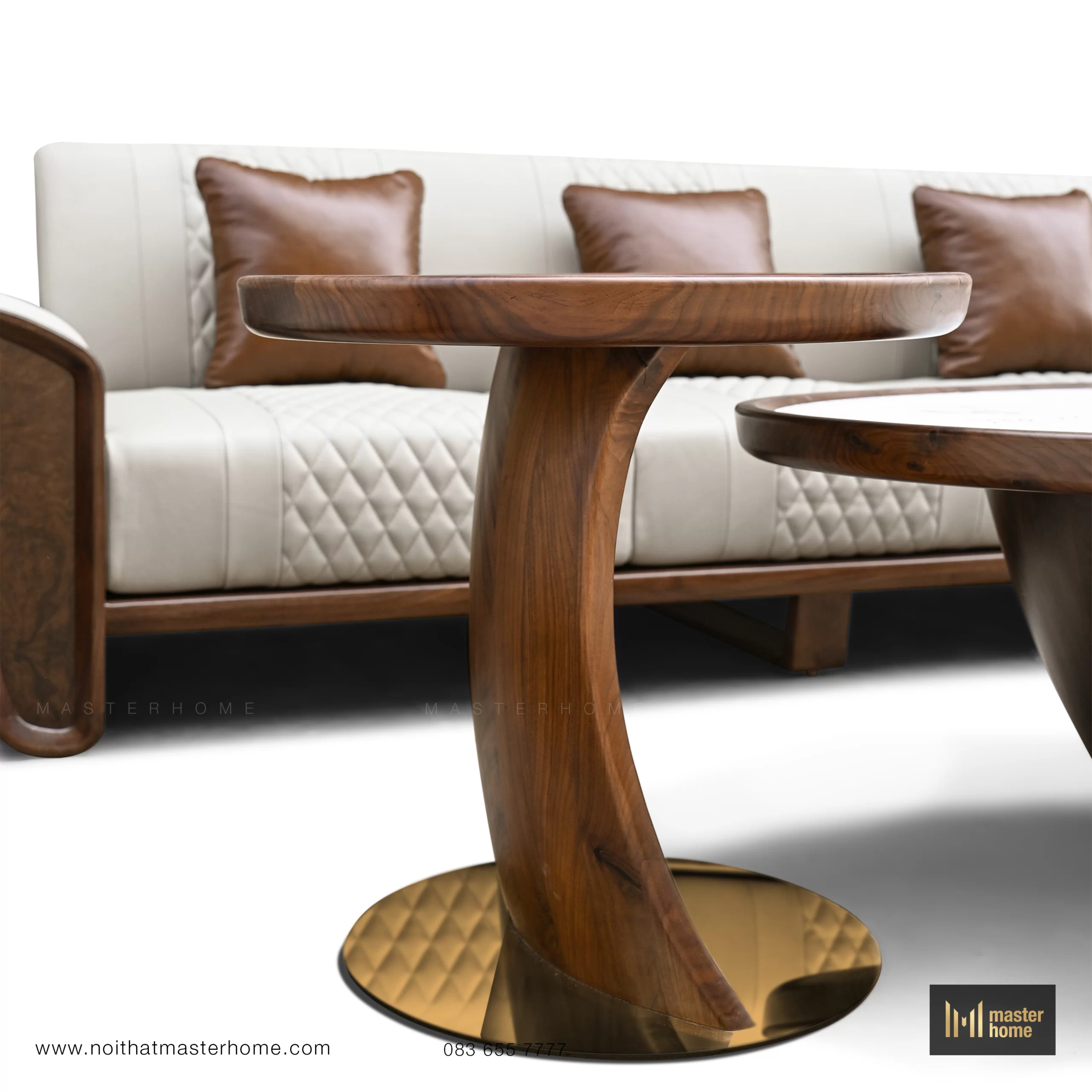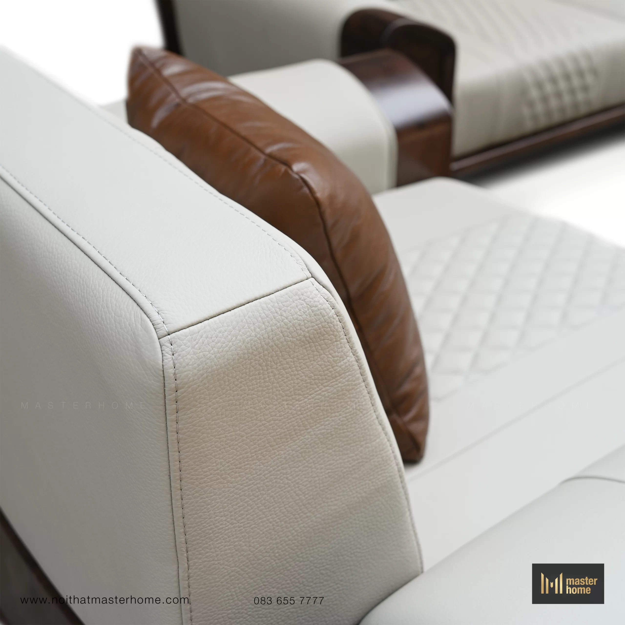 Bộ sofa gỗ Óc chó MBM-S02 (Da Bò Ý màu kem, ốp nu, mặt đá Viscostone) - MAS