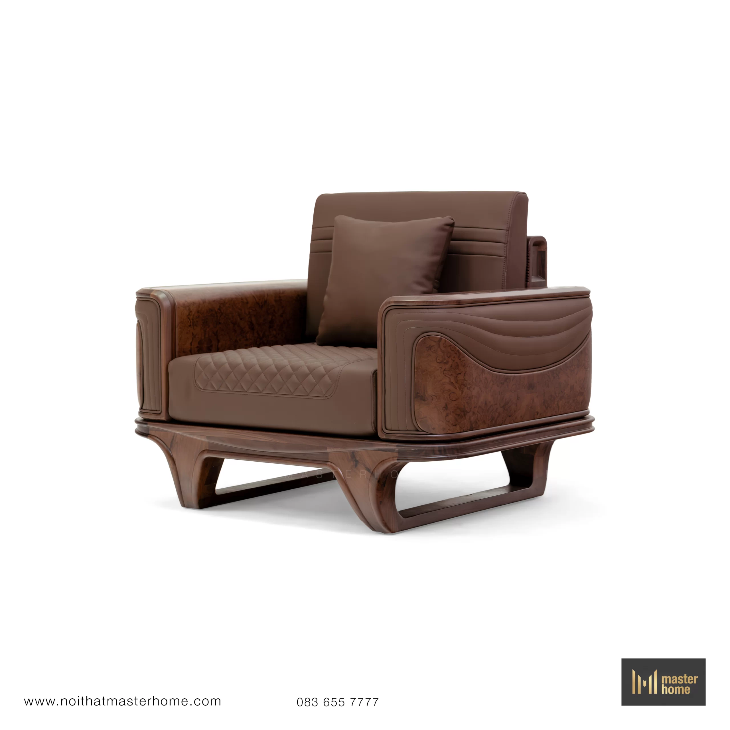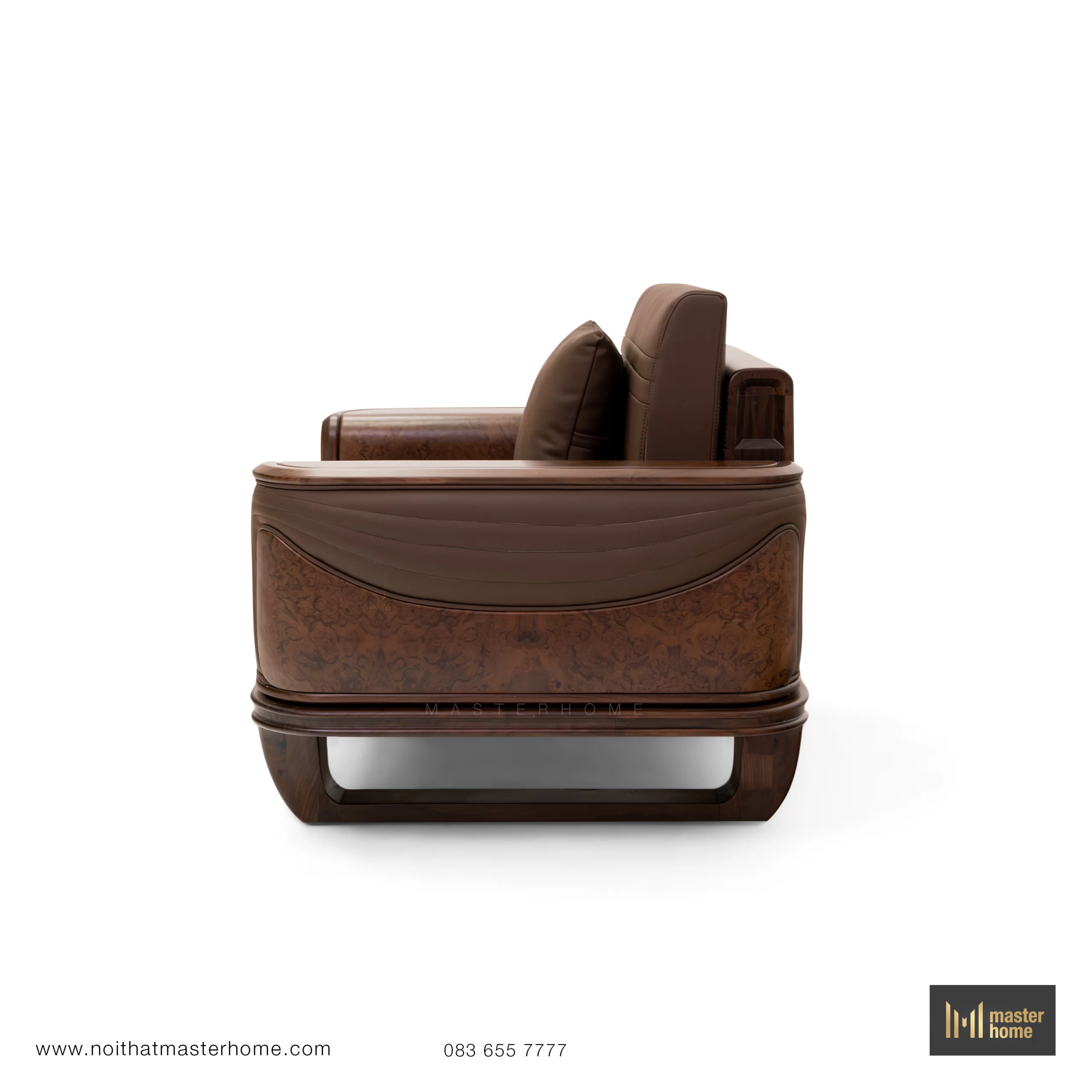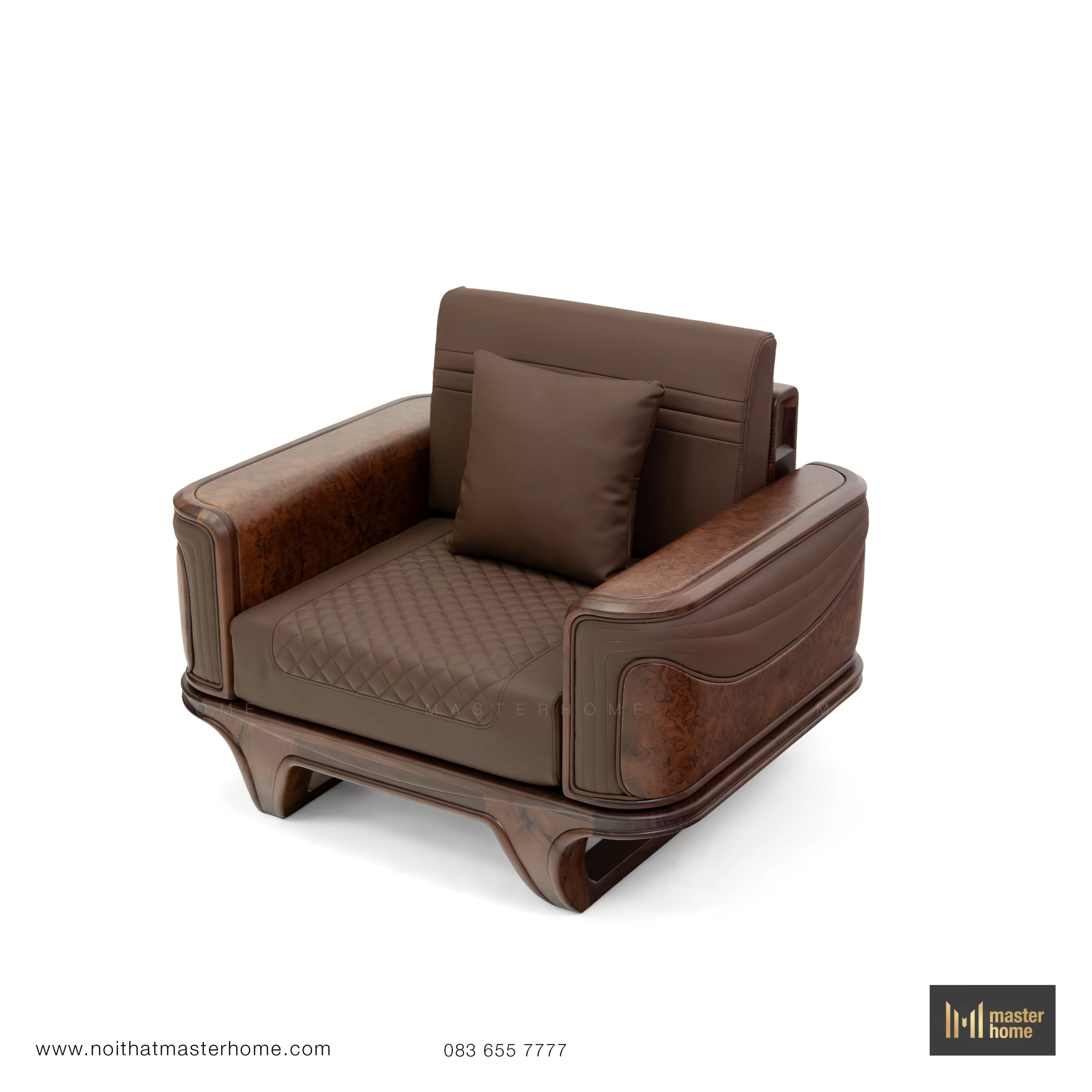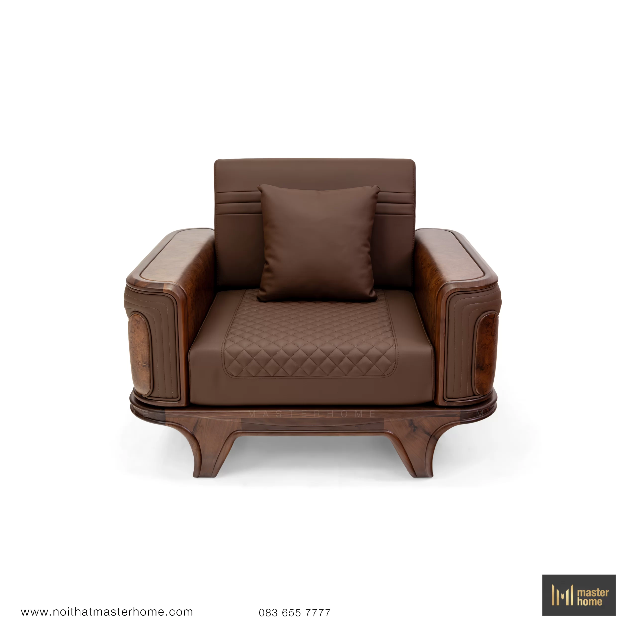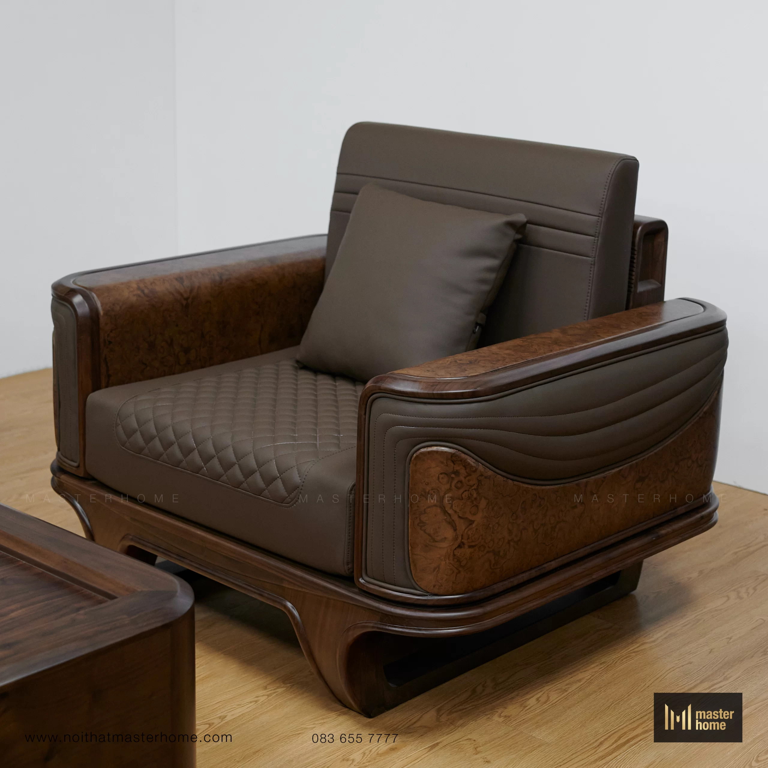 - MBM-S04 là bộ sofa gỗ óc chó dành cho những không gian tiếp khách cần sự bề thế và chỉn chu. Khung gỗ dày, đường nét vững, đệm ngồi dày bản cùng phần tay ghế rộng tạo cảm giác chắc chắn ngay từ cái nhìn đầu tiên. Bề mặt ngồi Da may trần bông trám, đi cùng gối tựa màu cam đất nổi bật, giúp tổng thể vừa sang trọng vừa ấm áp. Bộ gồm sofa dài, sofa đôi, ghế đơn, đôn và bàn trà – dễ dàng sắp xếp thành nhiều layout cho sảnh đón khách, phòng khách biệt thự hoặc không gian tiếp khách riêng.