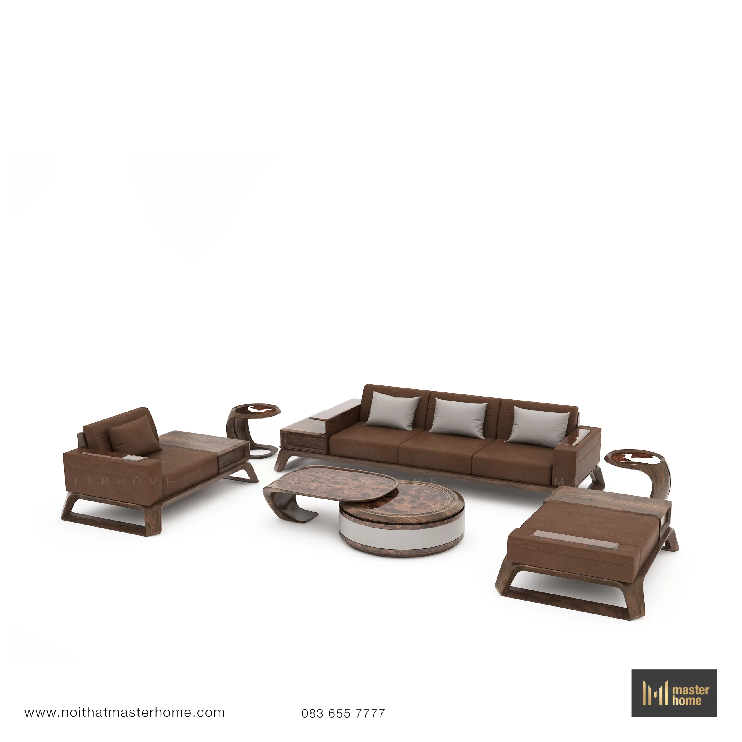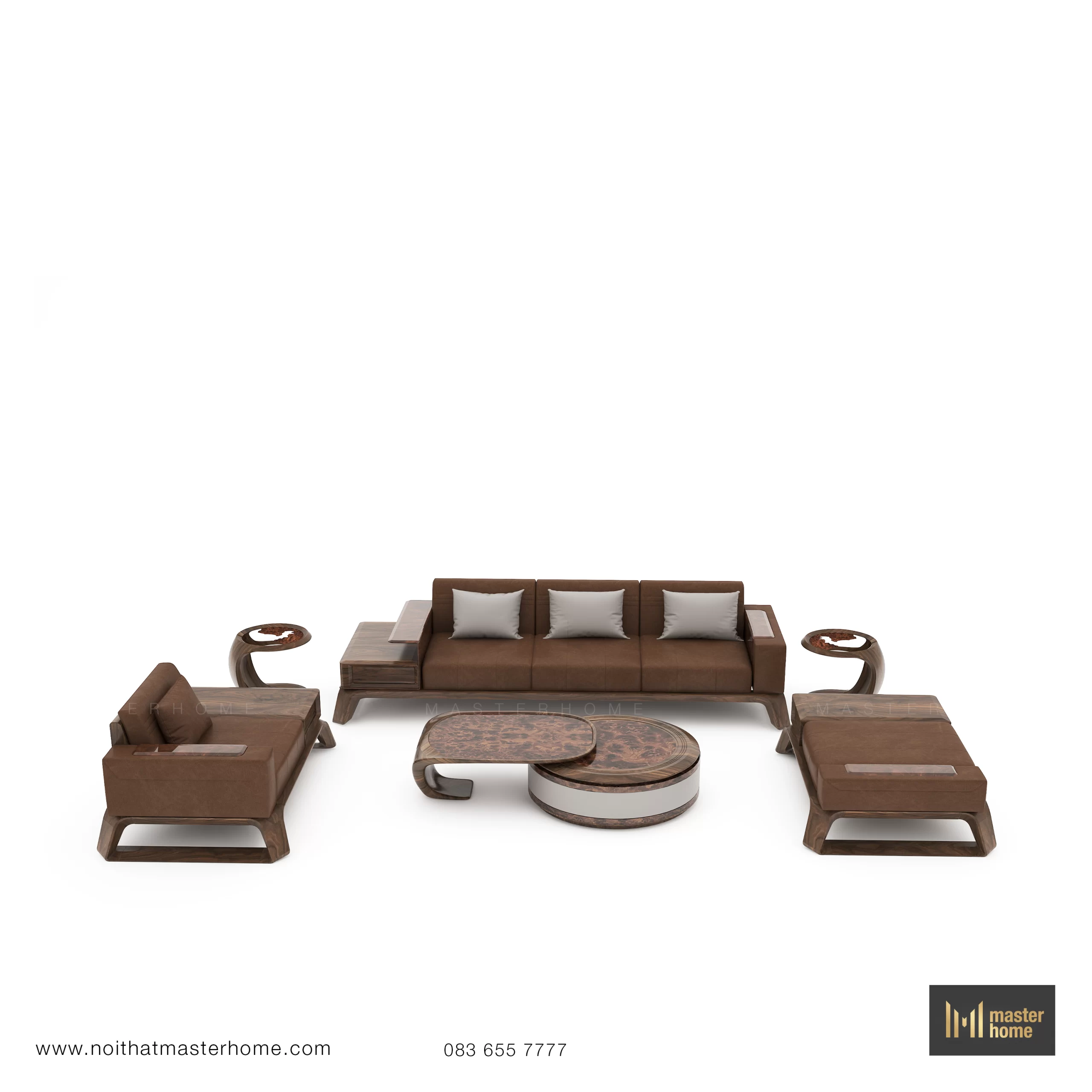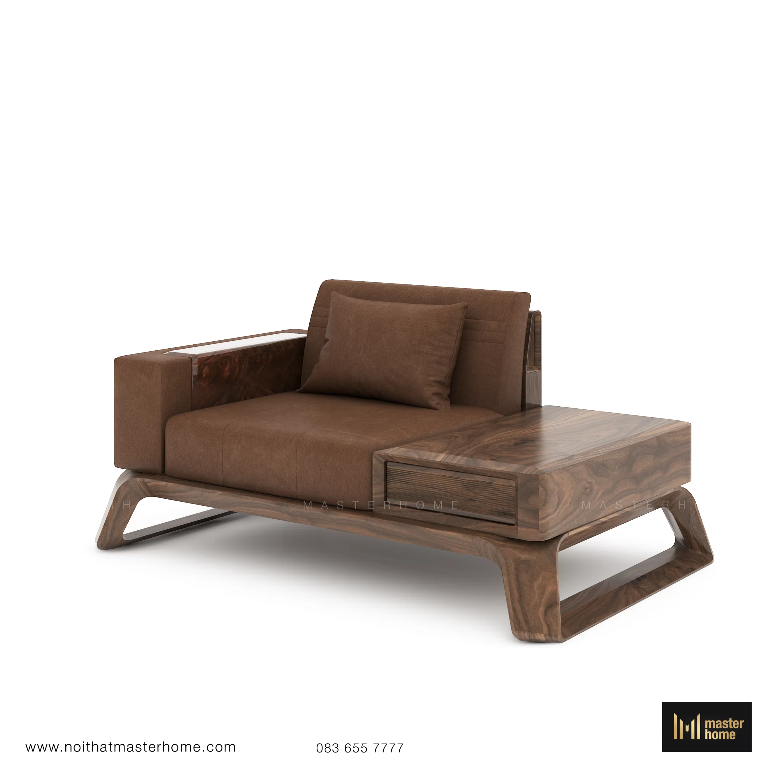 - Bộ sofa gỗ óc chó MBM-S06 được thiết kế cho những phòng khách rộng, cần một tâm điểm vừa sang trọng vừa sử dụng được hàng ngày. Khung gỗ óc chó bo mềm, đặt trên hệ chân vát đặc trưng của Masterhome tạo cảm giác vững chắc mà vẫn thanh thoát. Đệm da nâu ấm, form ngồi thoải mái, độ sâu ghế đủ để anh có thể ngồi, ngả lưng hoặc kê thêm gối mà không bị chật. Bộ gồm nhiều module (sofa chính, đôn, armchair, bàn trà, module nằm…) cho phép anh linh hoạt sắp xếp theo mặt bằng, từ tiếp khách trang trọng đến thư giãn thường ngày.