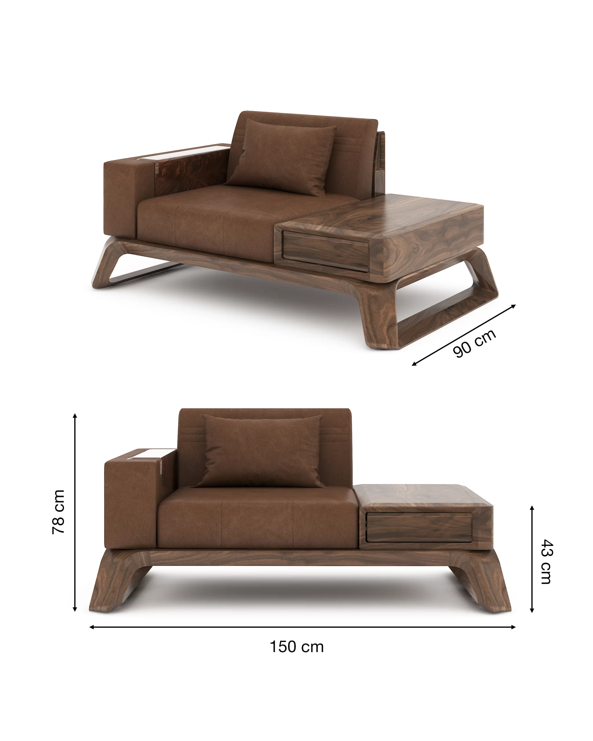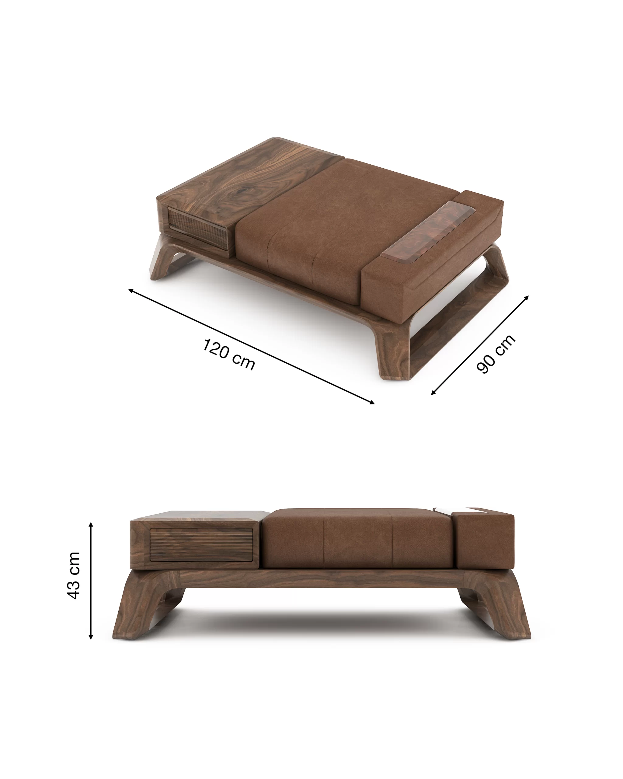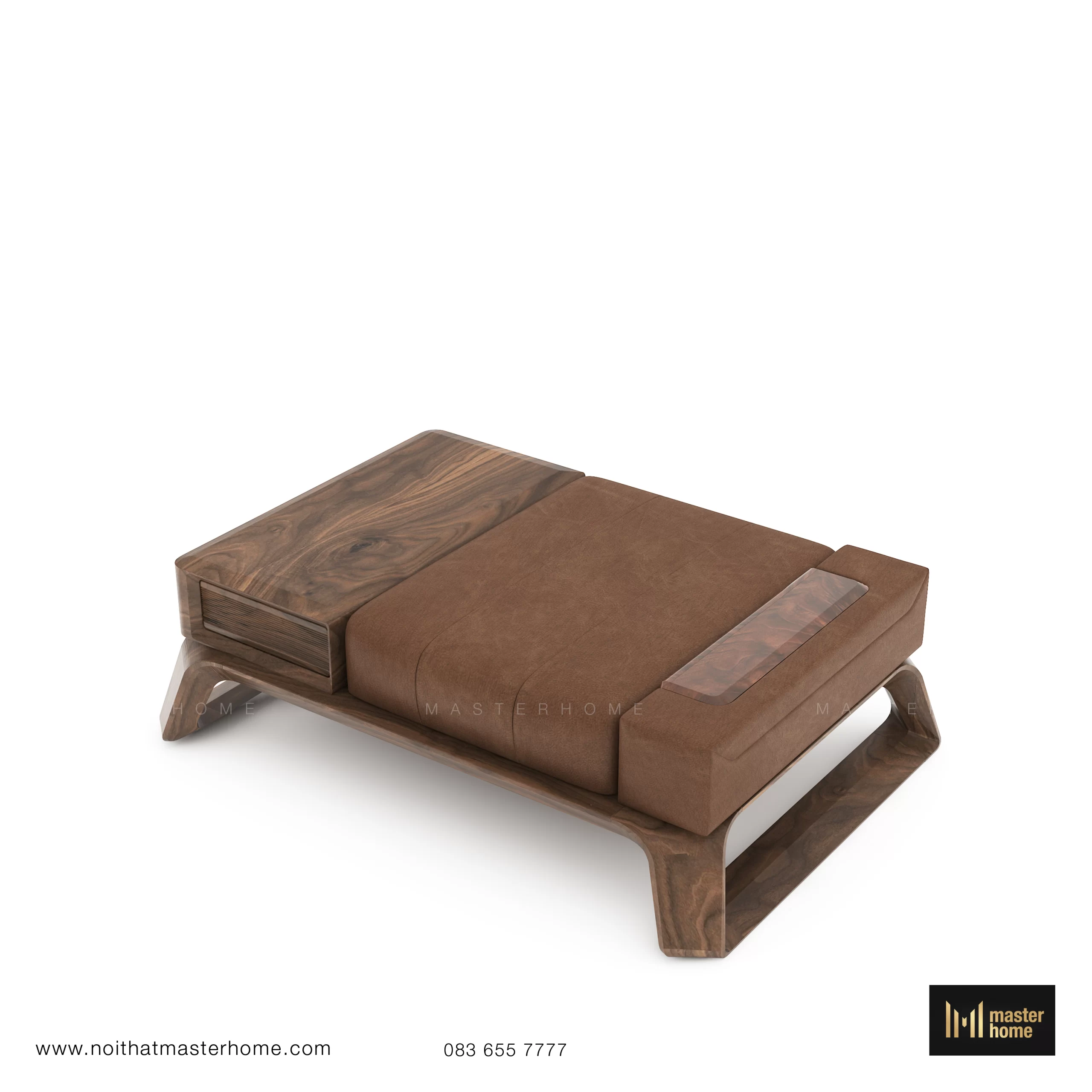 - Bọc: da nâu cao cấp dùng cho nội thất (da công nghiệp chất lượng cao hoặc da thật tùy option), bề mặt mịn, độ đàn hồi tốt, phù hợp khí hậu Việt Nam.