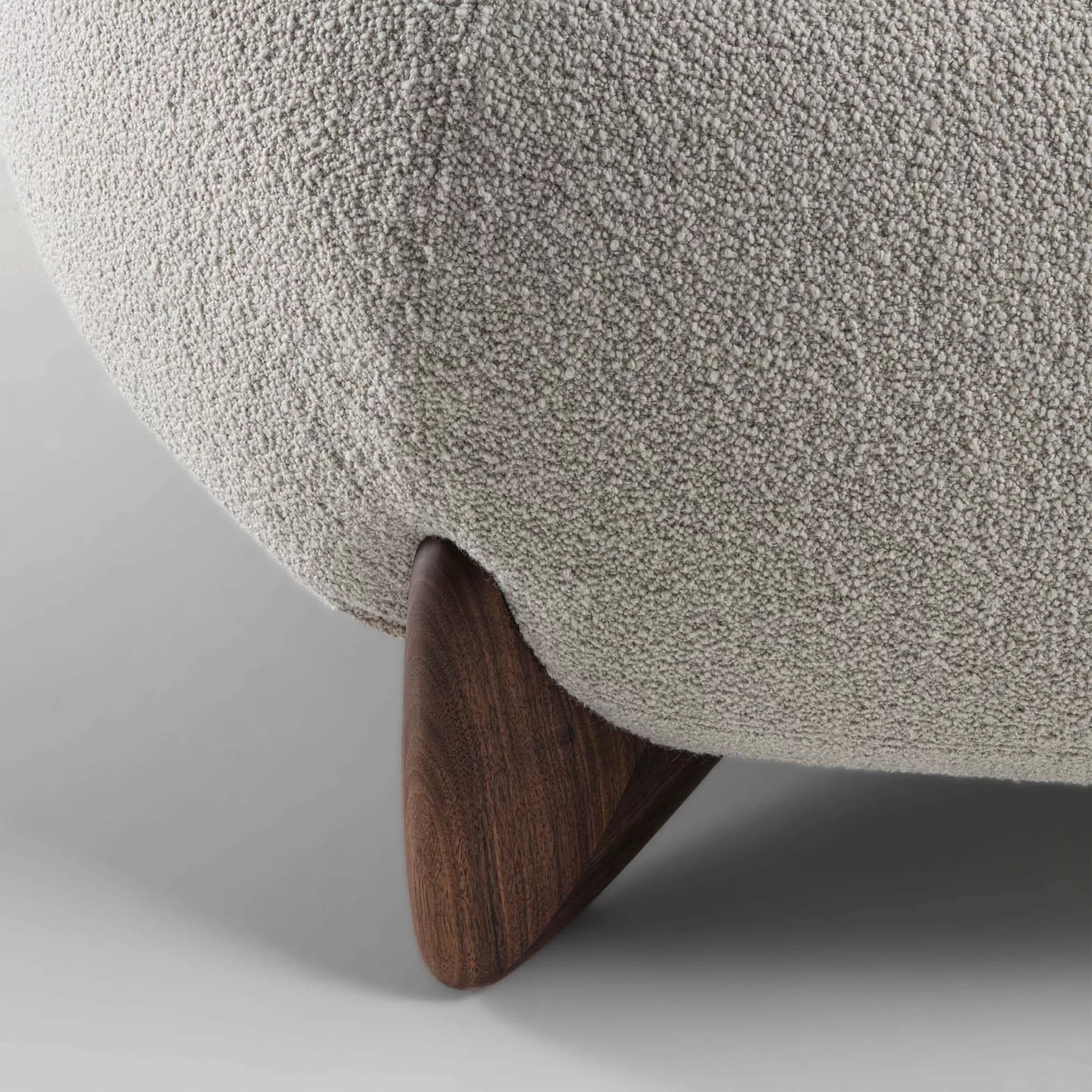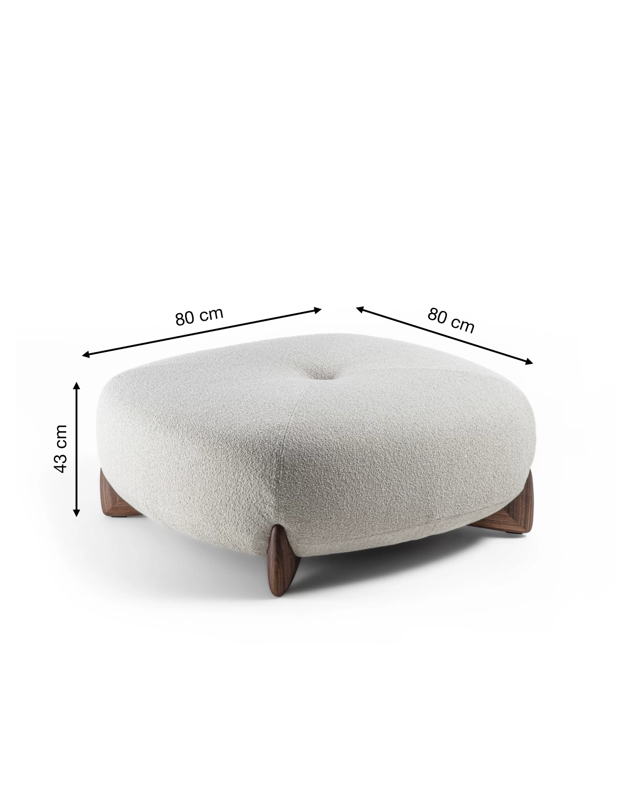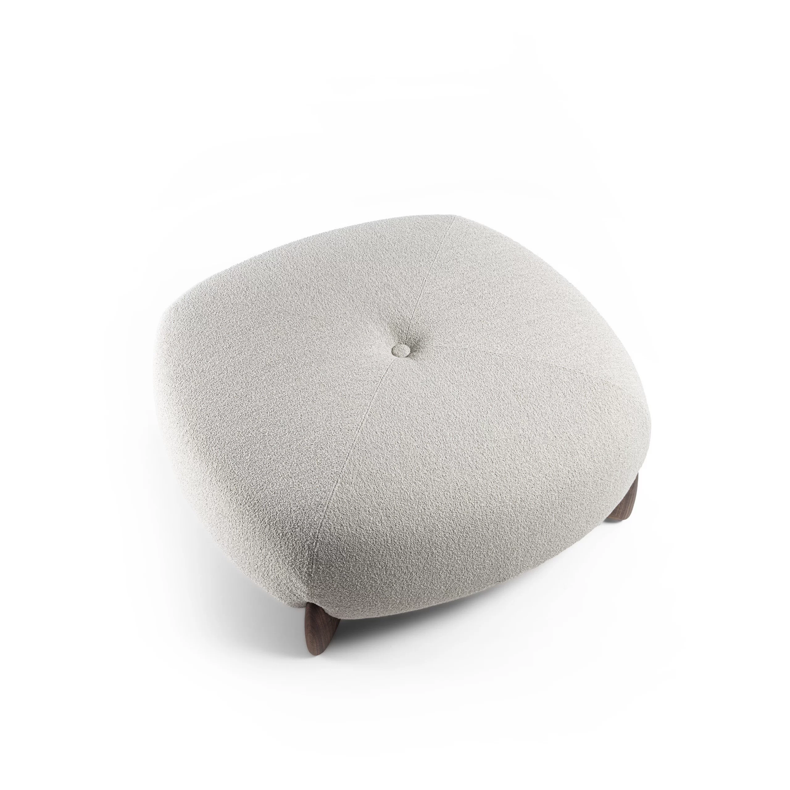 SOFTBAY Pouf là đôn bo tròn êm tay, mặt đôn chần nút giữa tạo độ trũng nhẹ “mời ngồi/đặt chân”. Dáng thoáng, không góc sắc; chân gỗ đặt chéo tạo nhịp nhìn và tôn khối. Dùng làm đôn ngồi, gác chân, hoặc điểm nhấn cạnh sofa/ghế bành.