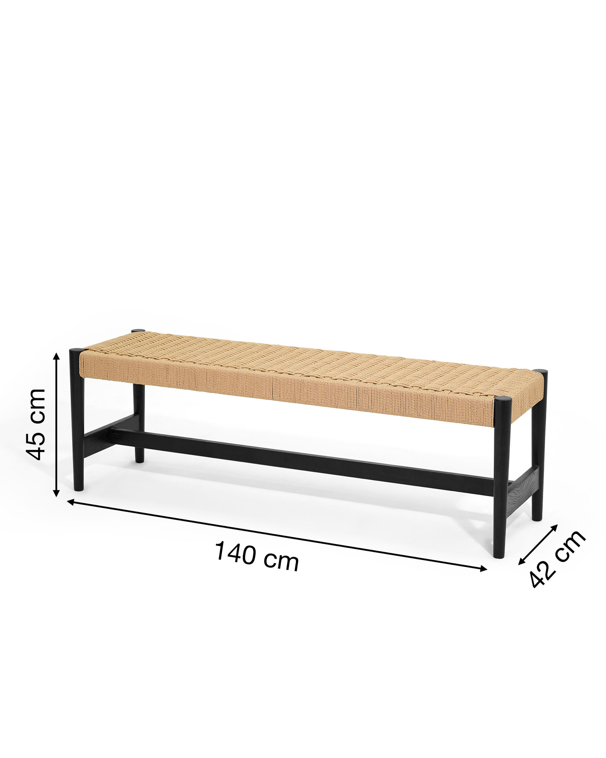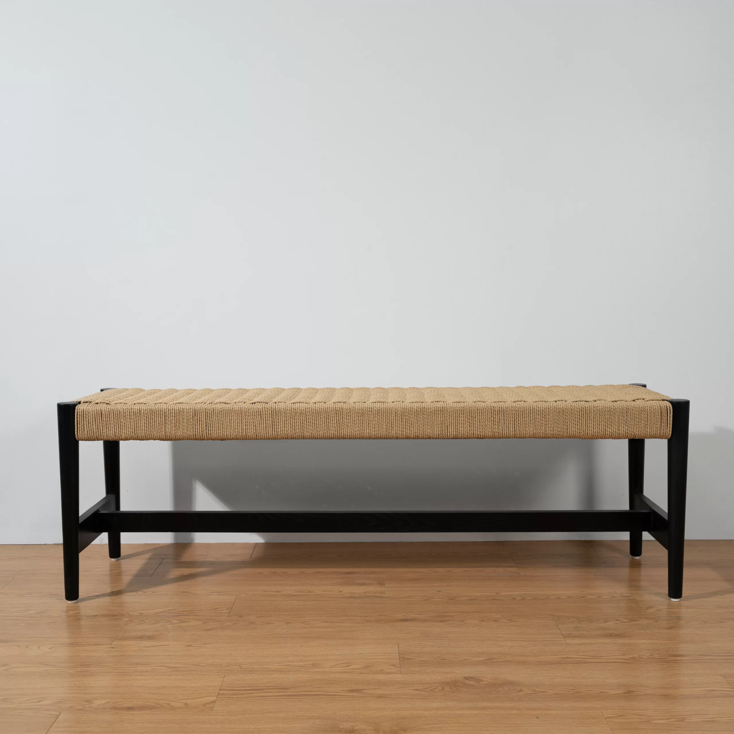 - Ghế dài NIDO là chiếc bench thanh mảnh với khung gỗ Tần bì sơn đen và mặt cói đan thủ công màu tự nhiên. Cho phép sử dụng linh hoạt: đặt dọc bàn ăn, kê ở cuối giường, cạnh cửa ra vào để ngồi mang giày, hay dùng như băng ghế décor dưới cửa sổ. Mặt ngồi bằng cói đan tay tạo bề mặt phẳng nhưng có độ đàn hồi nhẹ, ngồi êm và thoáng khí. Khung chân thẳng, có thanh giằng dưới giúp ghế vững, không rung khi ngồi nhiều người. Sự tương phản đen – be khiến NIDO dễ hòa vào không gian có sẵn nhưng vẫn đủ cá tính để trở thành điểm nhấn.