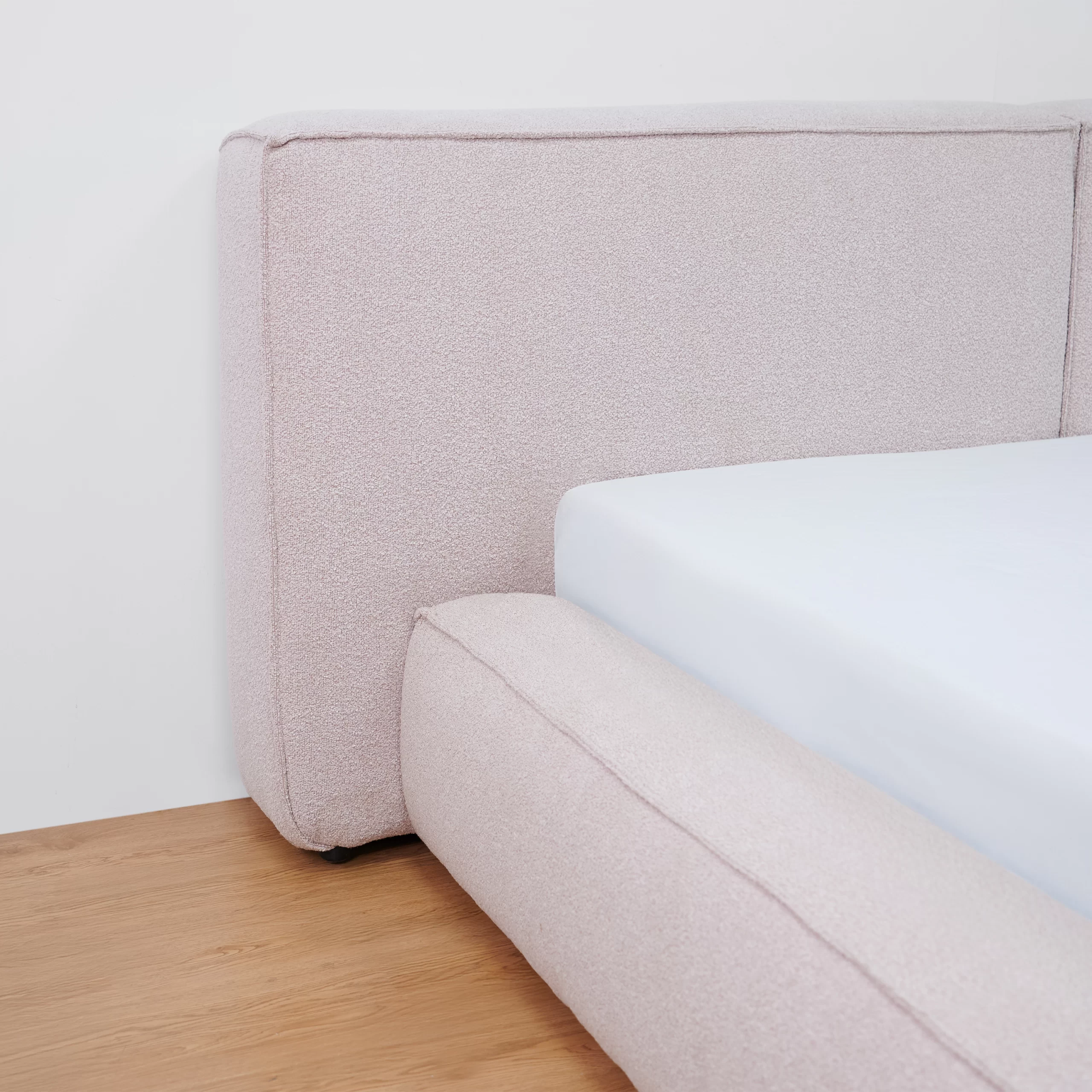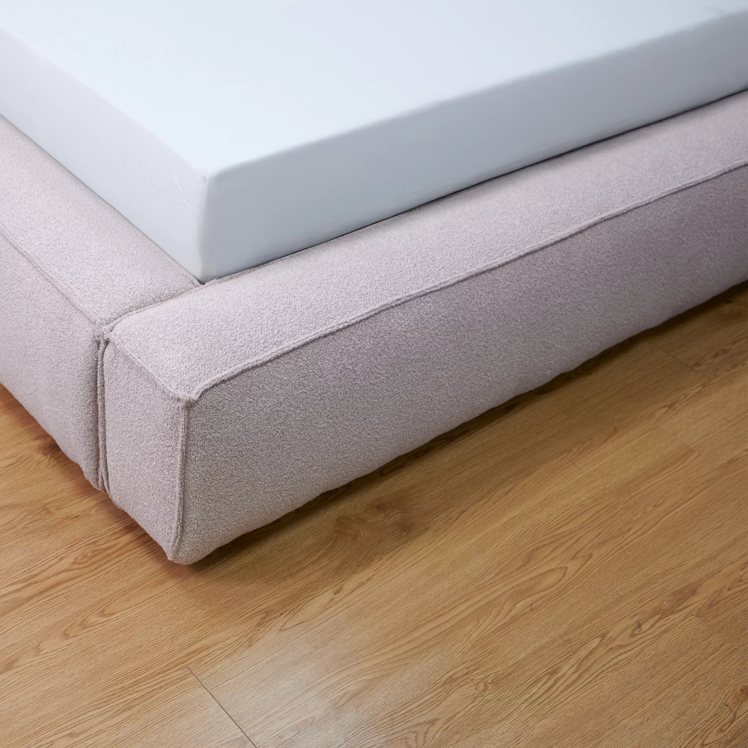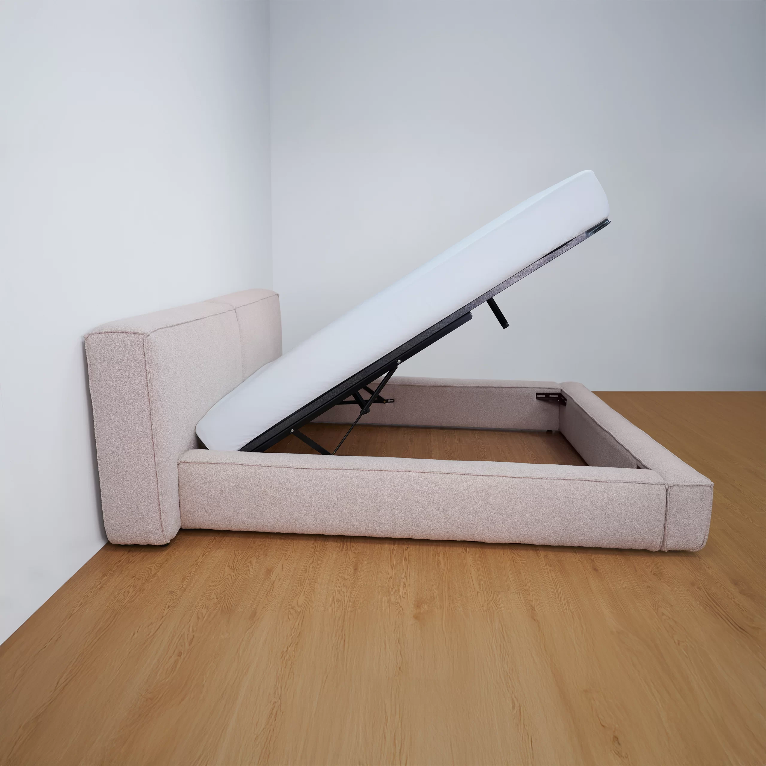 Giường lữu trữ LENNO bọc vải Boucle màu hồng nhạt - MAS
