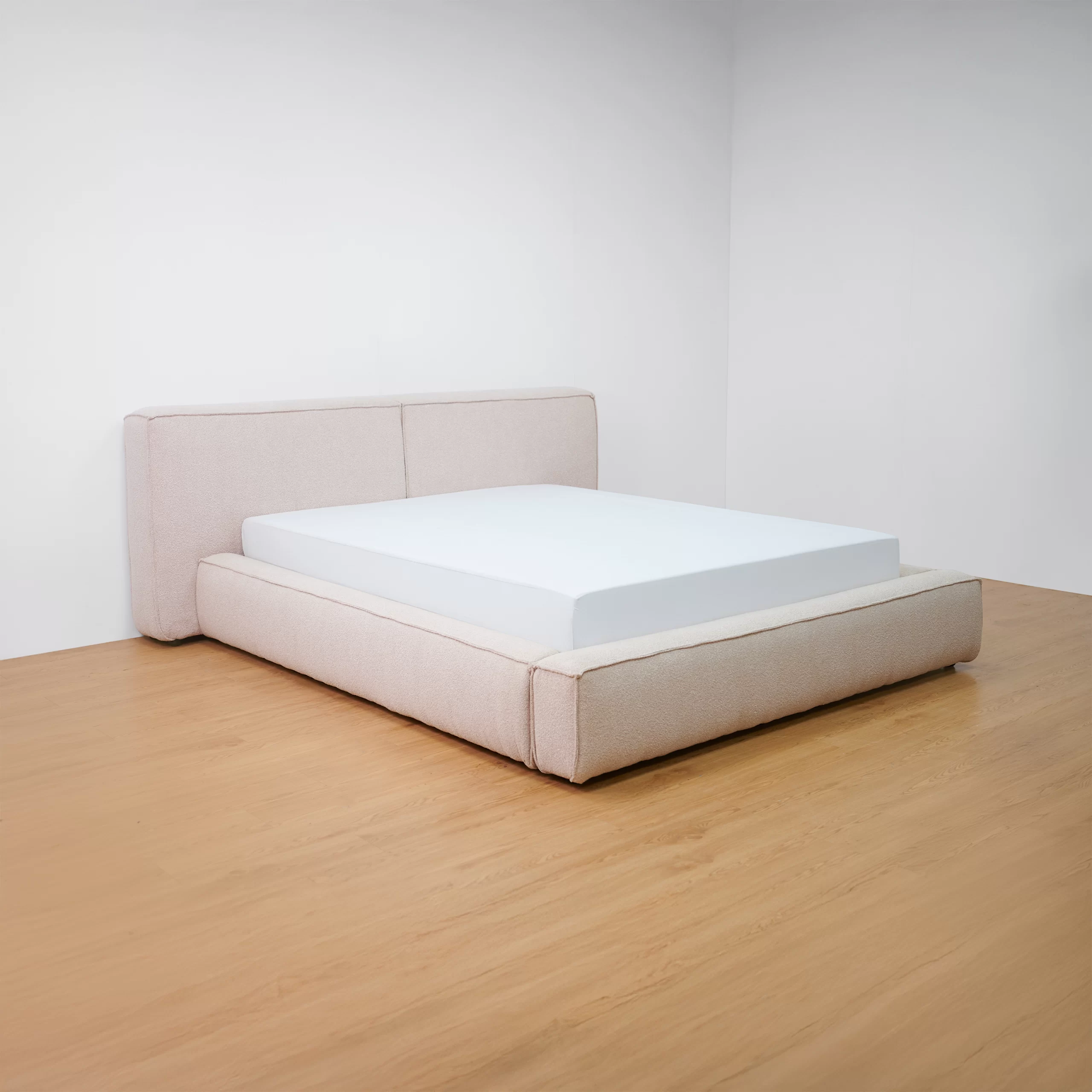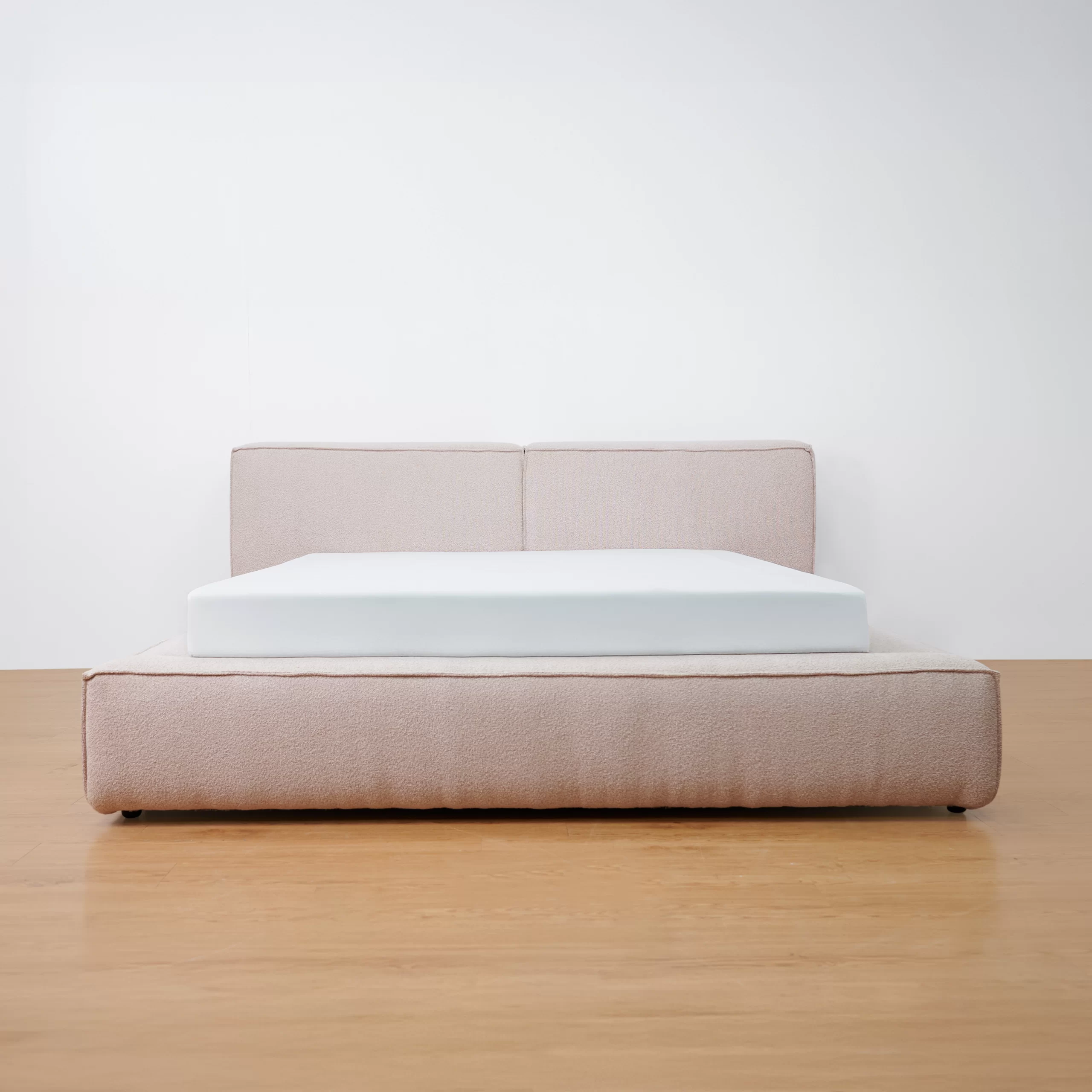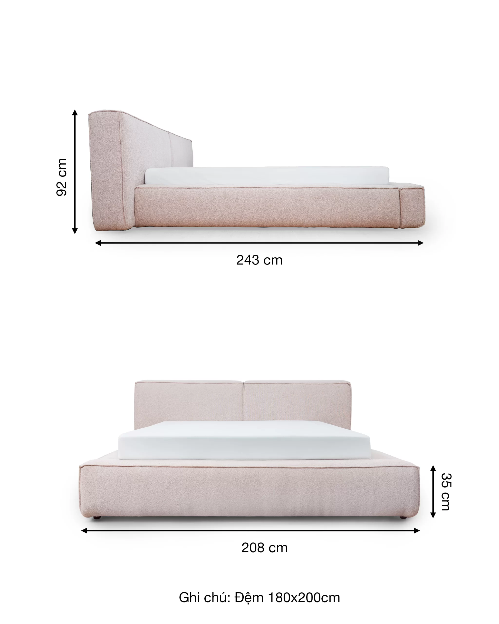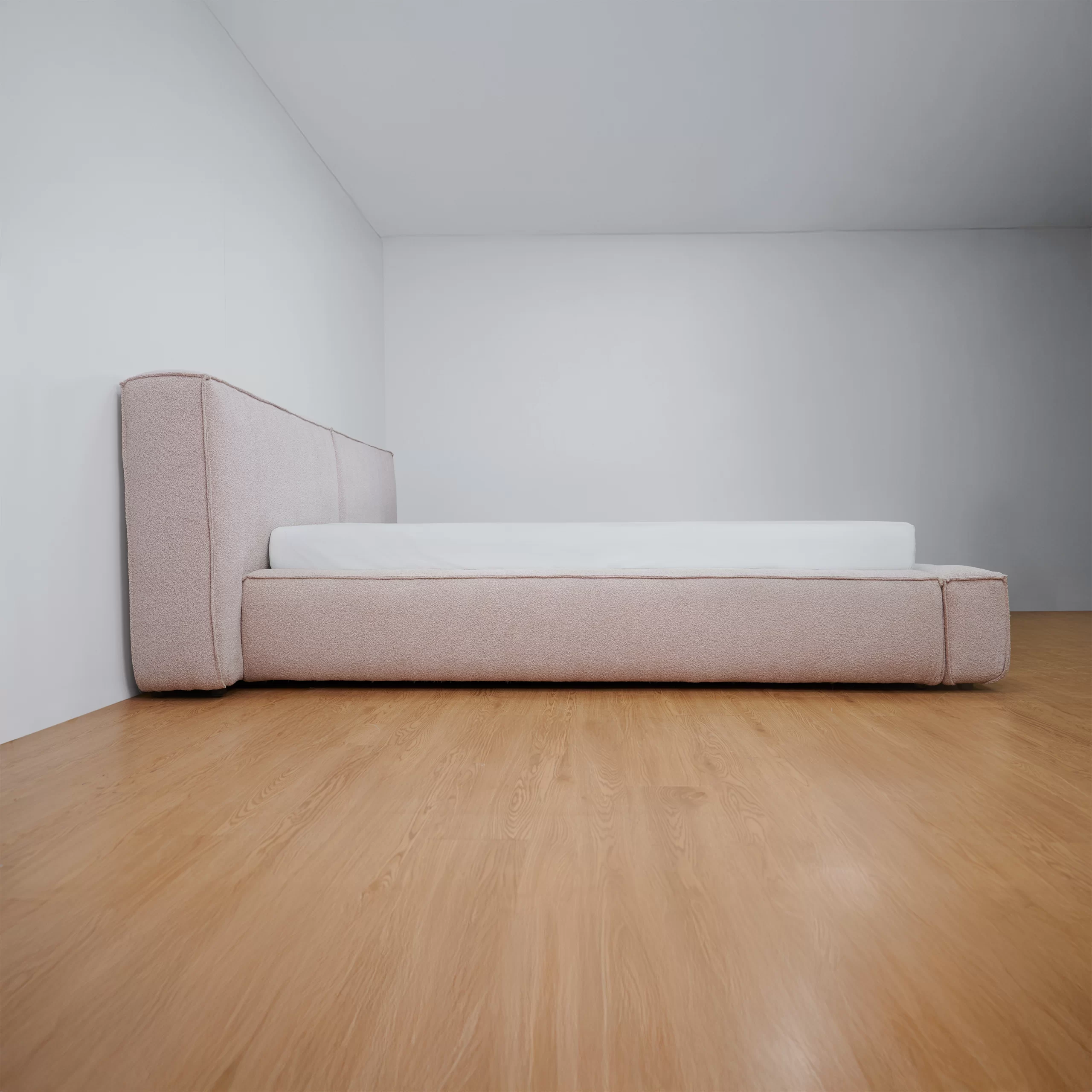 Giường lữu trữ LENNO bọc vải Boucle màu hồng nhạt - MAS