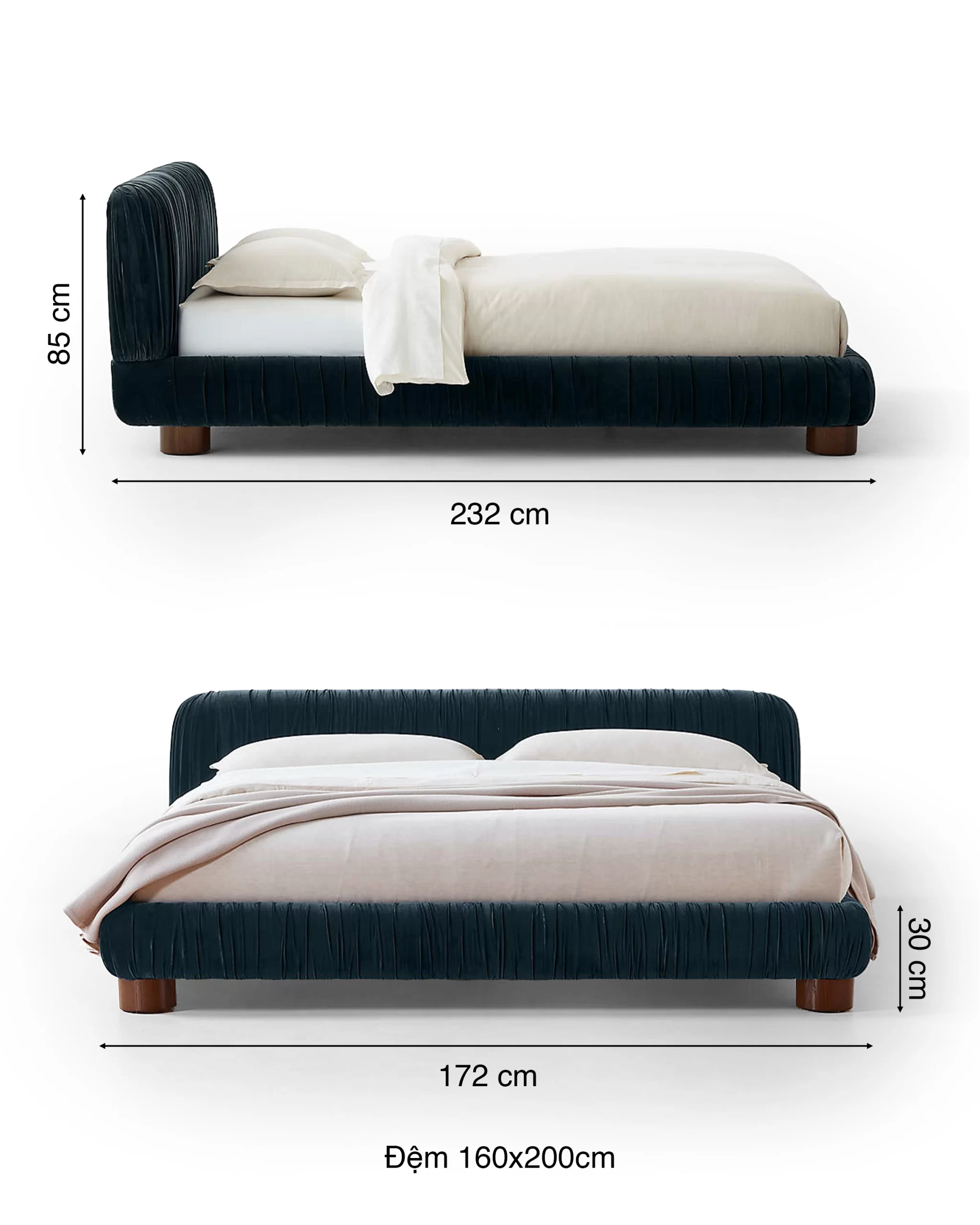 Giường CANTA bọc vải Nhung Mịn màu xanh biển - MAS