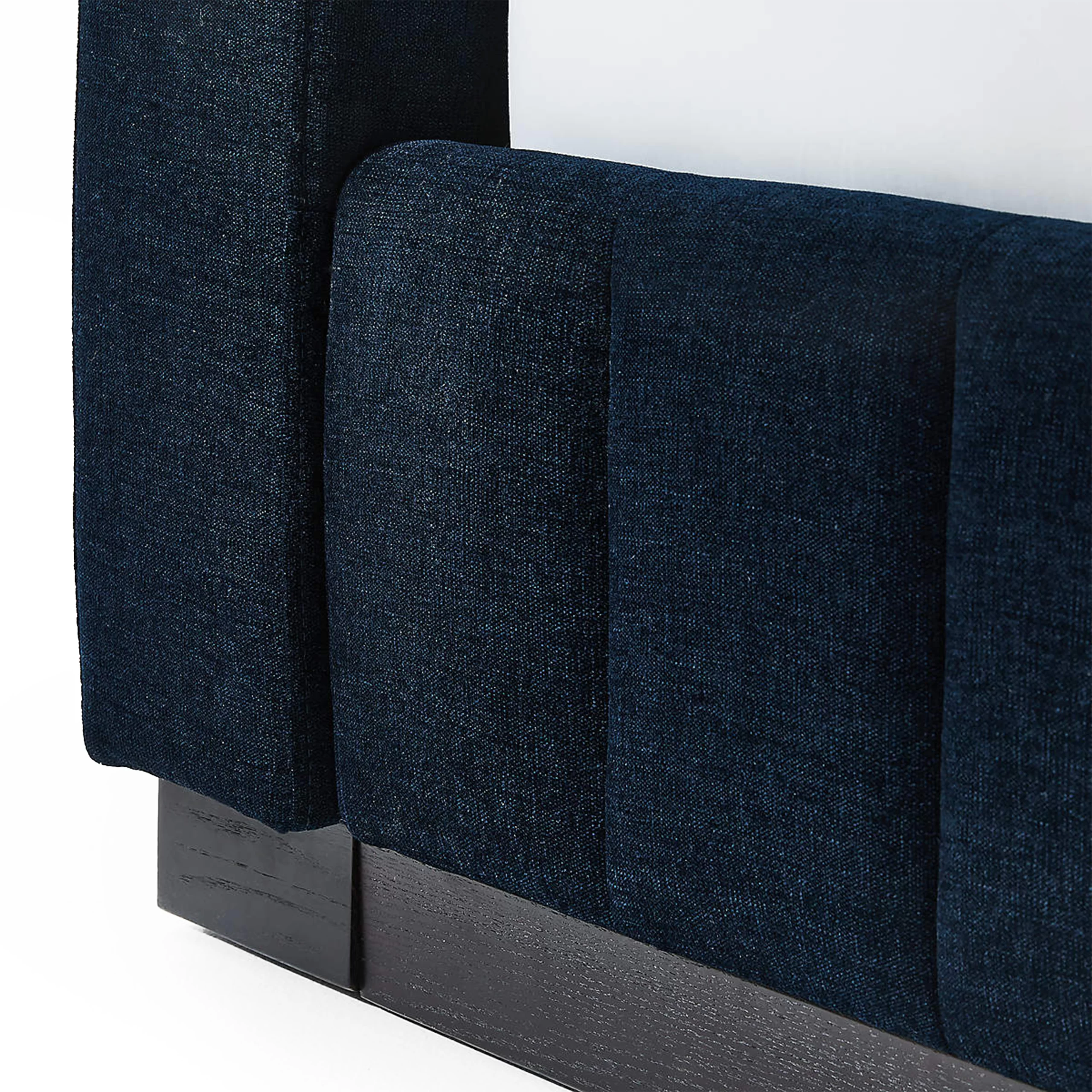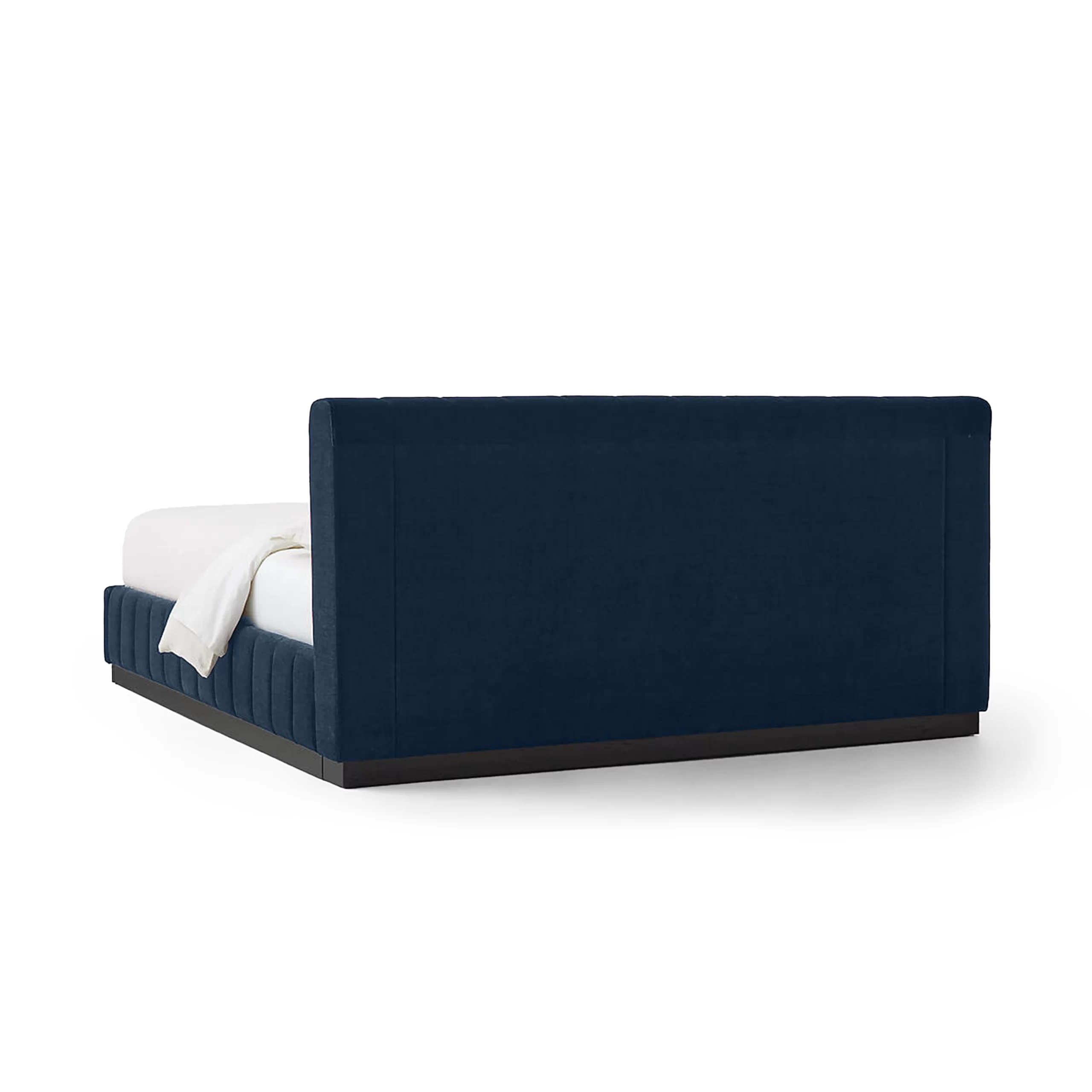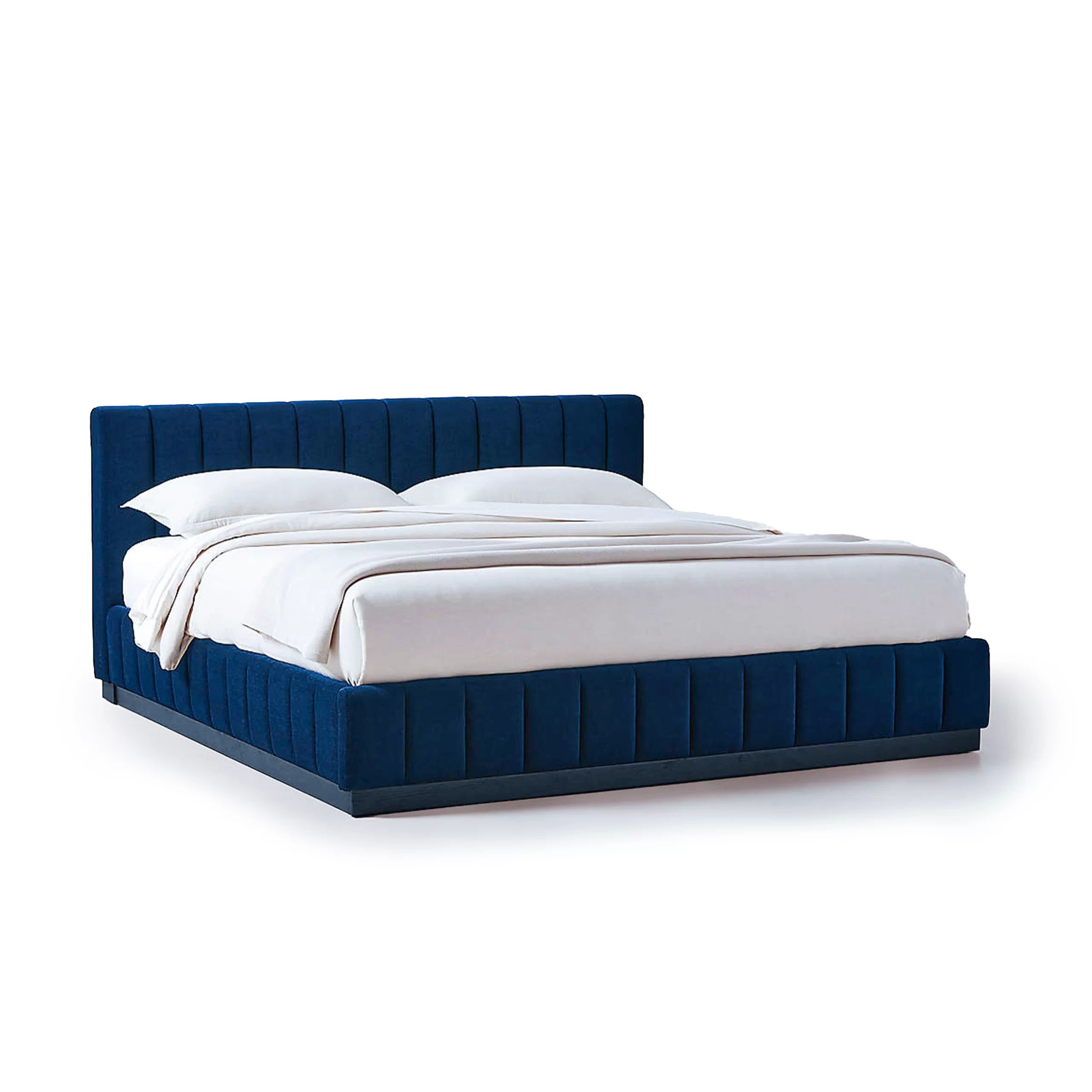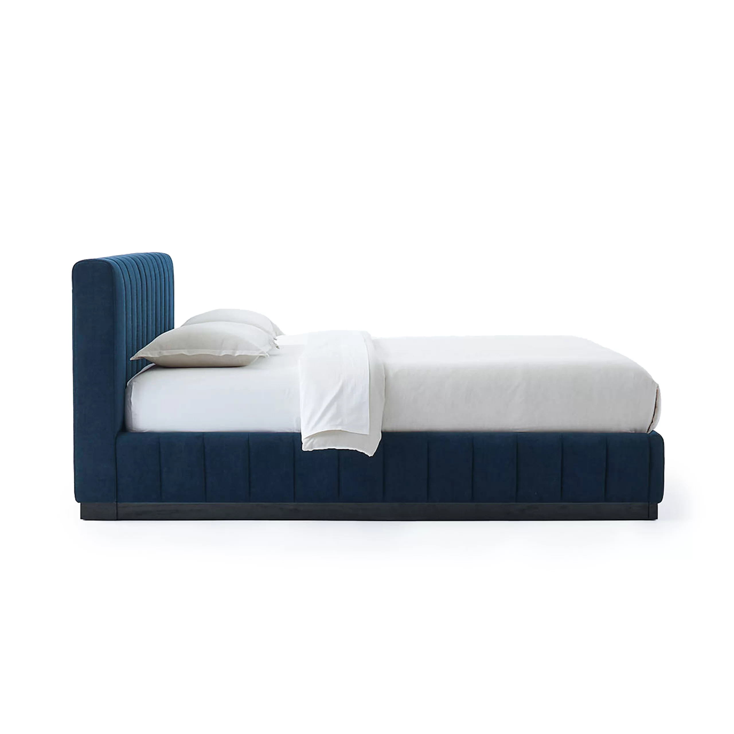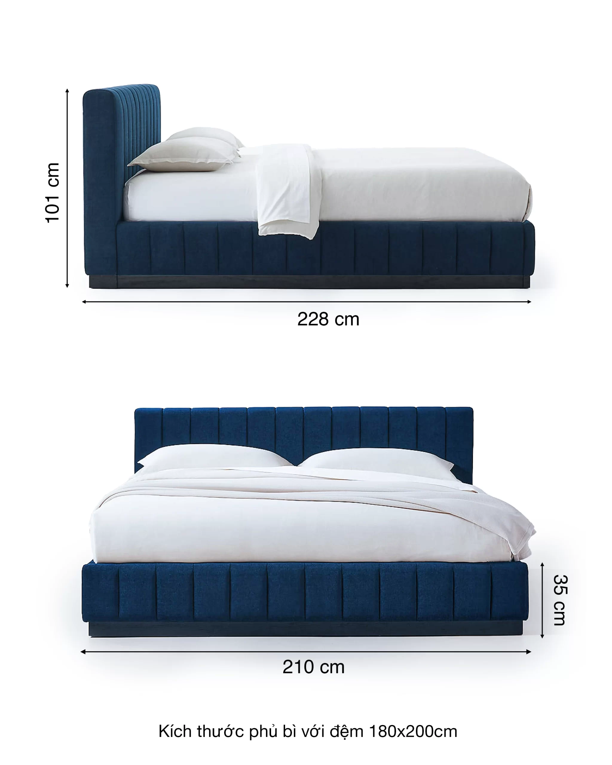 Giường FORTE bọc vải Nhung Chenille rãnh dọc màu xanh biển
