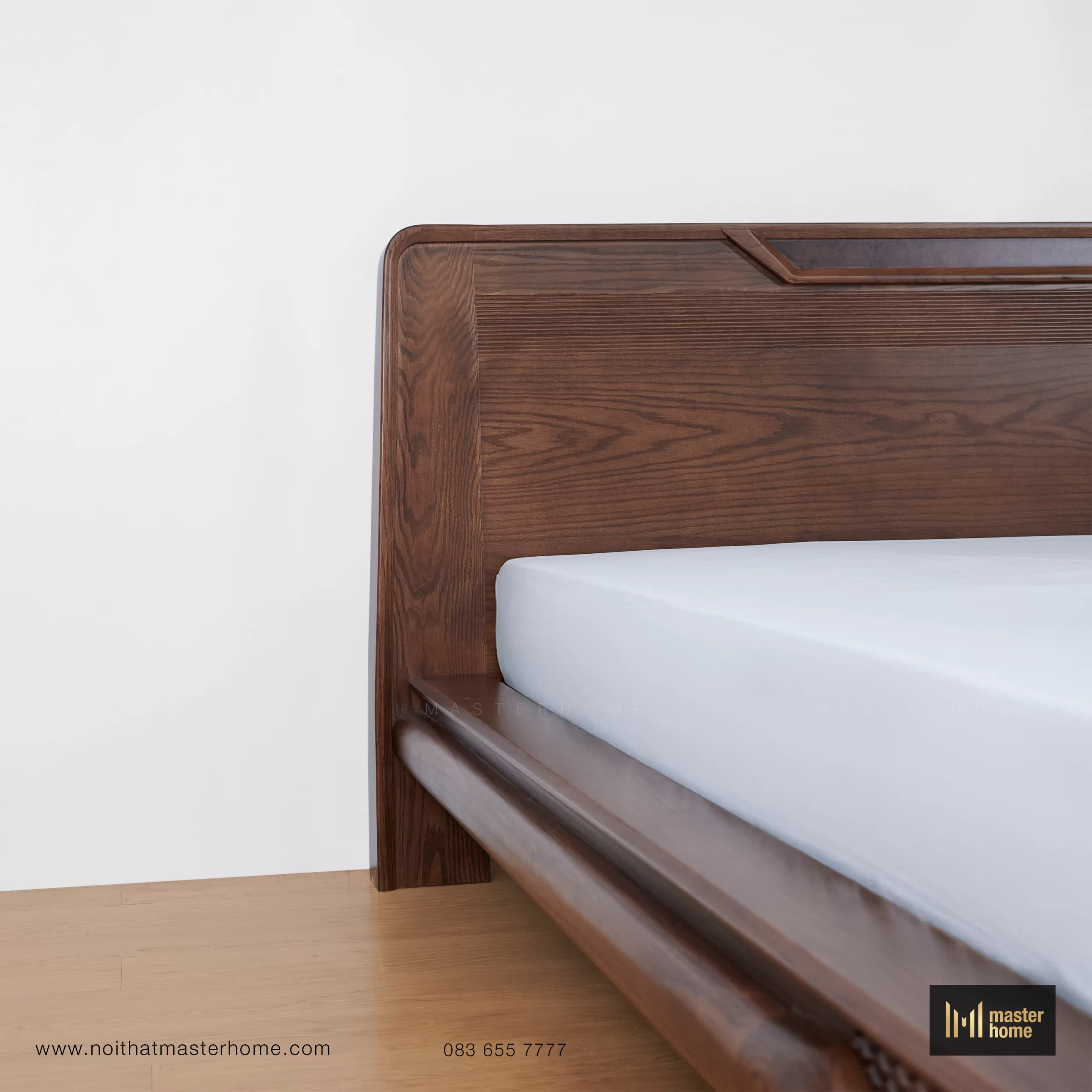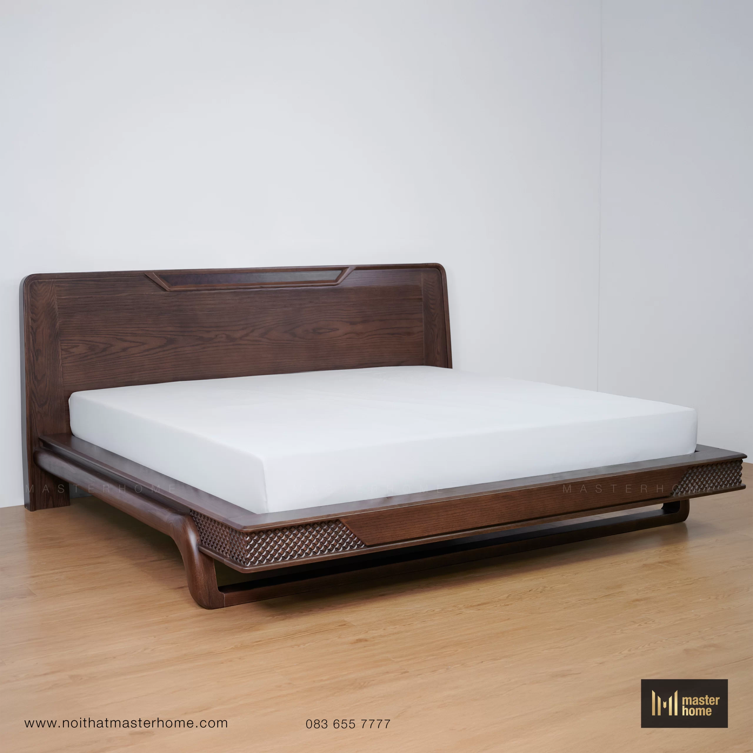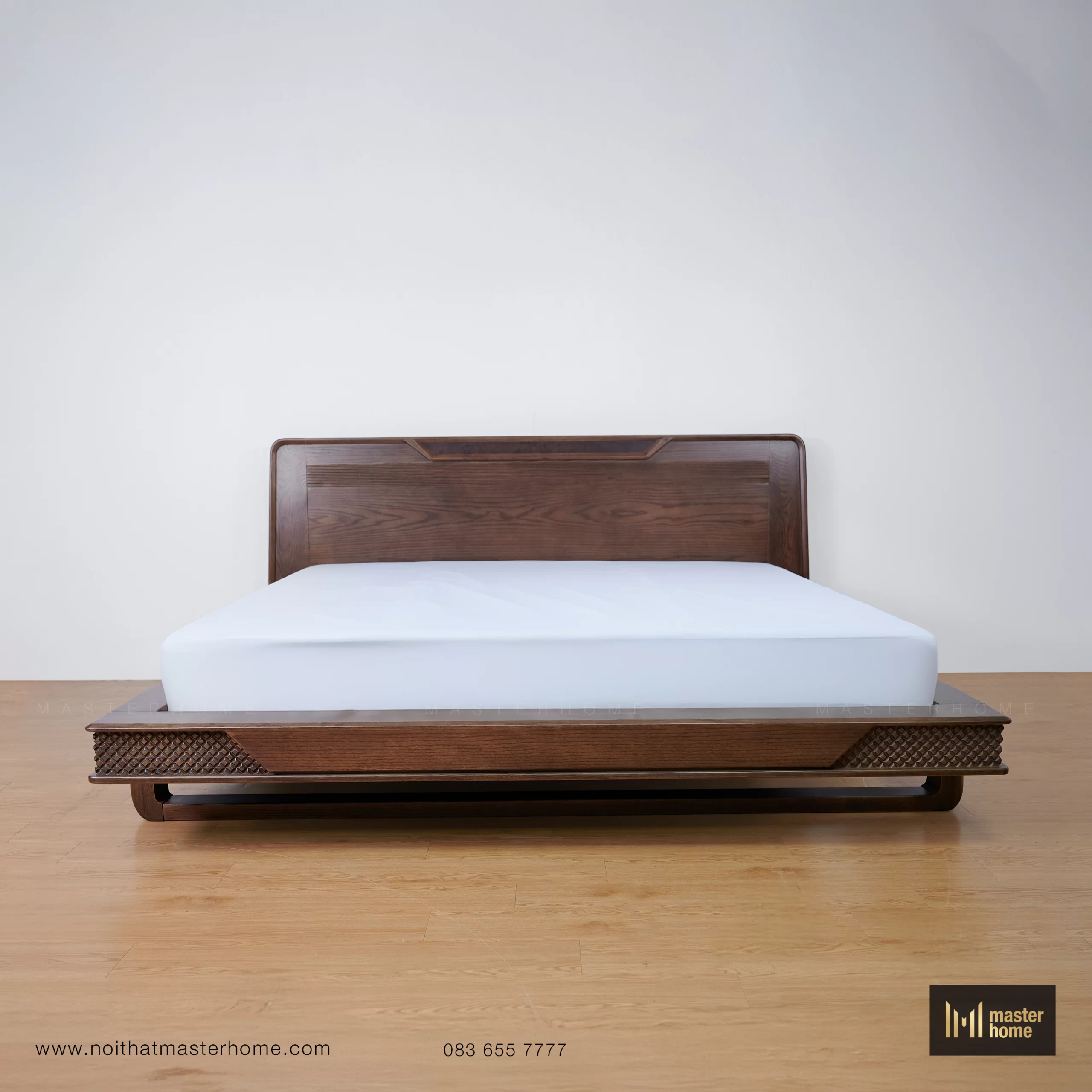 Điểm nhấn của thiết kế nằm ở diềm giường được chạm hoa văn caro nổi chạy dọc hai bên, tạo hiệu ứng ánh sáng – bóng đổ rất sống động, khiến tổng thể vừa mang hơi hướng Á Đông, vừa đủ hiện đại để đặt trong các không gian đương đại. Tông màu nâu trầm giúp MBM-B05 dễ phối với ga trắng, be hoặc các gam trung tính.