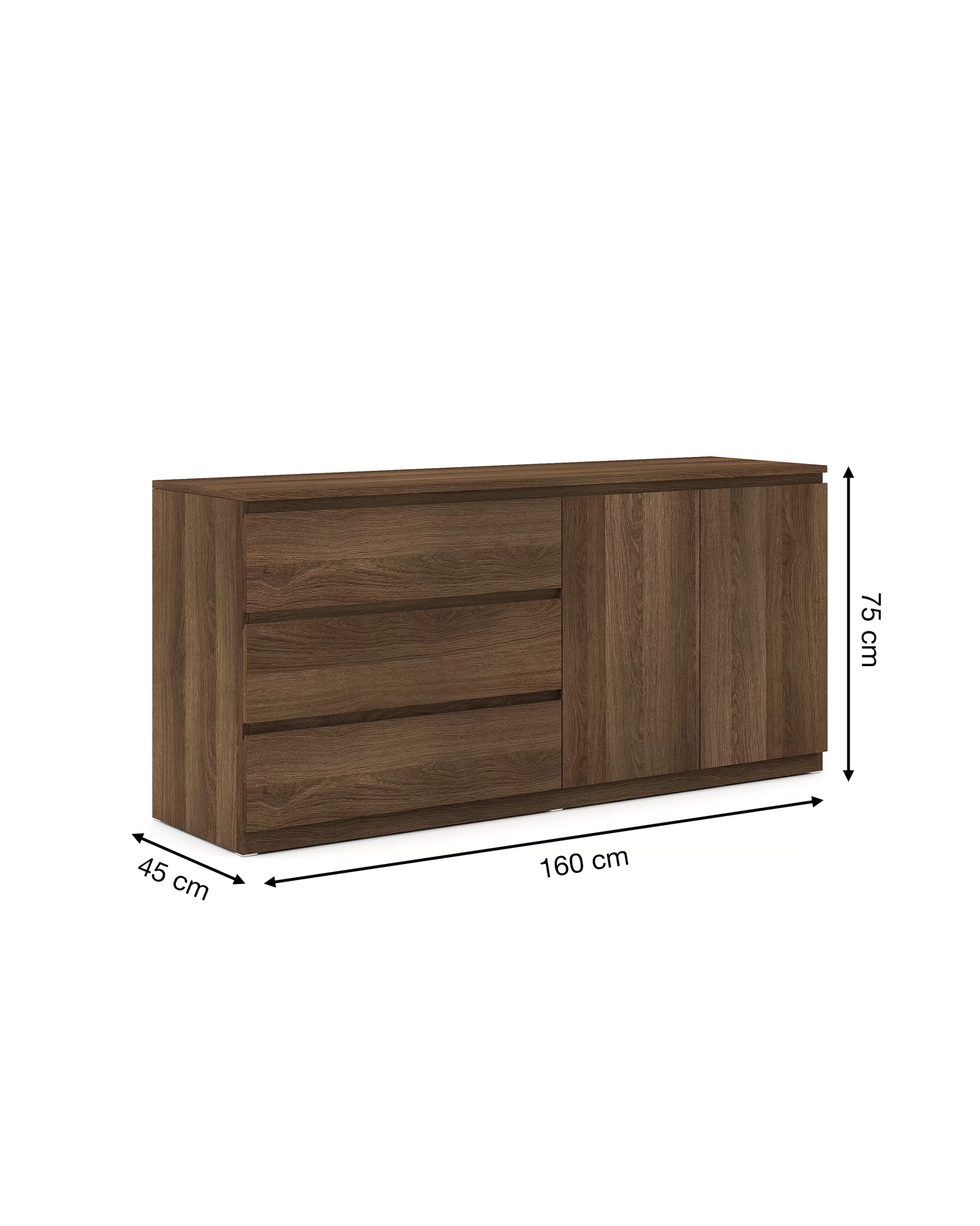 - Lưu trữ Đa dạng: Kết hợp 3 ngăn kéo rộng rãi và 2 khoang cánh mở (như hình) để tối ưu hóa việc cất giữ.