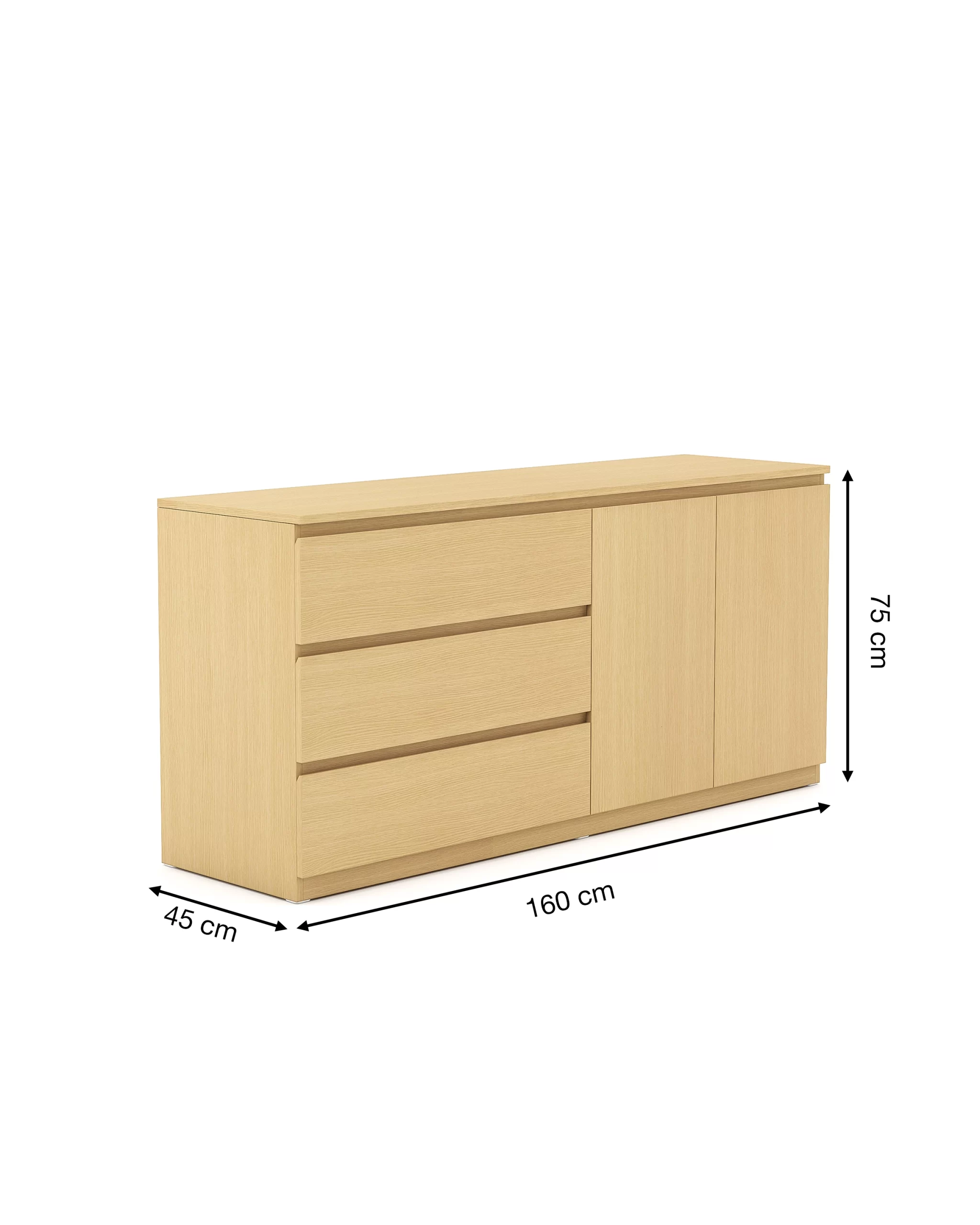 - Lưu trữ Đa dạng: Kết hợp 3 ngăn kéo rộng rãi và 2 khoang cánh mở (như hình) để tối ưu hóa việc cất giữ.